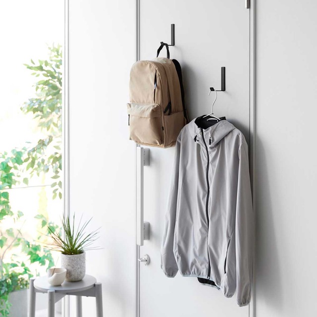 当ショップは国内正規品(新品)のみ取り扱いのため、安心してお買い求め頂けます。 お好みの高さや場所に取り付けできるので、お出かけ前にサッと手に取れて便利です。フック付きでバッグや帽子、ストールなども収納できます。壁の穴が目立ちにくい石こうボードピンの他に、木ネジでも取り付け可能です。 ●商品の情報 ・ブランド:YAMAZAKI(山崎実業)/日本 ・ジャンル:壁掛けコートハンガー ・主な素材:スチール 粉体塗装、天然木 ウレタン樹脂塗装(本体)/ABS樹脂(取り付けベース x2) ・生産国:中国 ・サイズ:約W40xD162XH406mm ・内寸サイズ:約W15xD150xH52mm(ハンガー部)/約W25xD16XH25mm(フック部) ・重量:約455g ・耐荷重:ハンガー部4kg/フック部2kg ※静止荷重 ・付属品:石こうボードピンセット(取り付けピース x4、クギ x12、キャップ x4)/木ネジ x4 ・取り付け可能な壁(石こうボードピン使用時):壁紙 布壁紙 ビニール壁紙貼りなどの石こうボード、薄ベニヤ (木ネジ使用時):柱 板壁(厚さ1cm以上)/プリント合板(裏側に水平にサンがある場所)/裏に下地材(間柱)が入っている壁 ※ハンガー部に使用している素材は、天然木の性質上、木目や節の出方・色味などに個体差が生じる場合がありますが、不良ではありません。 ●ご購入前にお読みください ・ご購入後の返品や交換はできません。 ・撮影環境や閲覧環境により、写真と色合い等が異なる場合がございます。 山崎実業 YAMAZAKI タワー tower 壁付けコートハンガー 壁付けコートハンガー タワー コートハンガー コートフック 壁掛けコートハンガー 壁掛けフック 壁掛けハンガー 収納ラック スリム コンパクト収納 アイデア商品 アイデア収納 収納アイデア 新築祝い 引っ越し祝い 引越し祝い ギフト プレゼント インテリア おすすめ ベーシック シンプル スマート おしゃれ 白 黒 人気ブランド 新品 取扱店 正規品 正規販売店 正規取扱店 個人・法人対応 適格請求書発行事業者 インボイス登録済み セレクトショップ