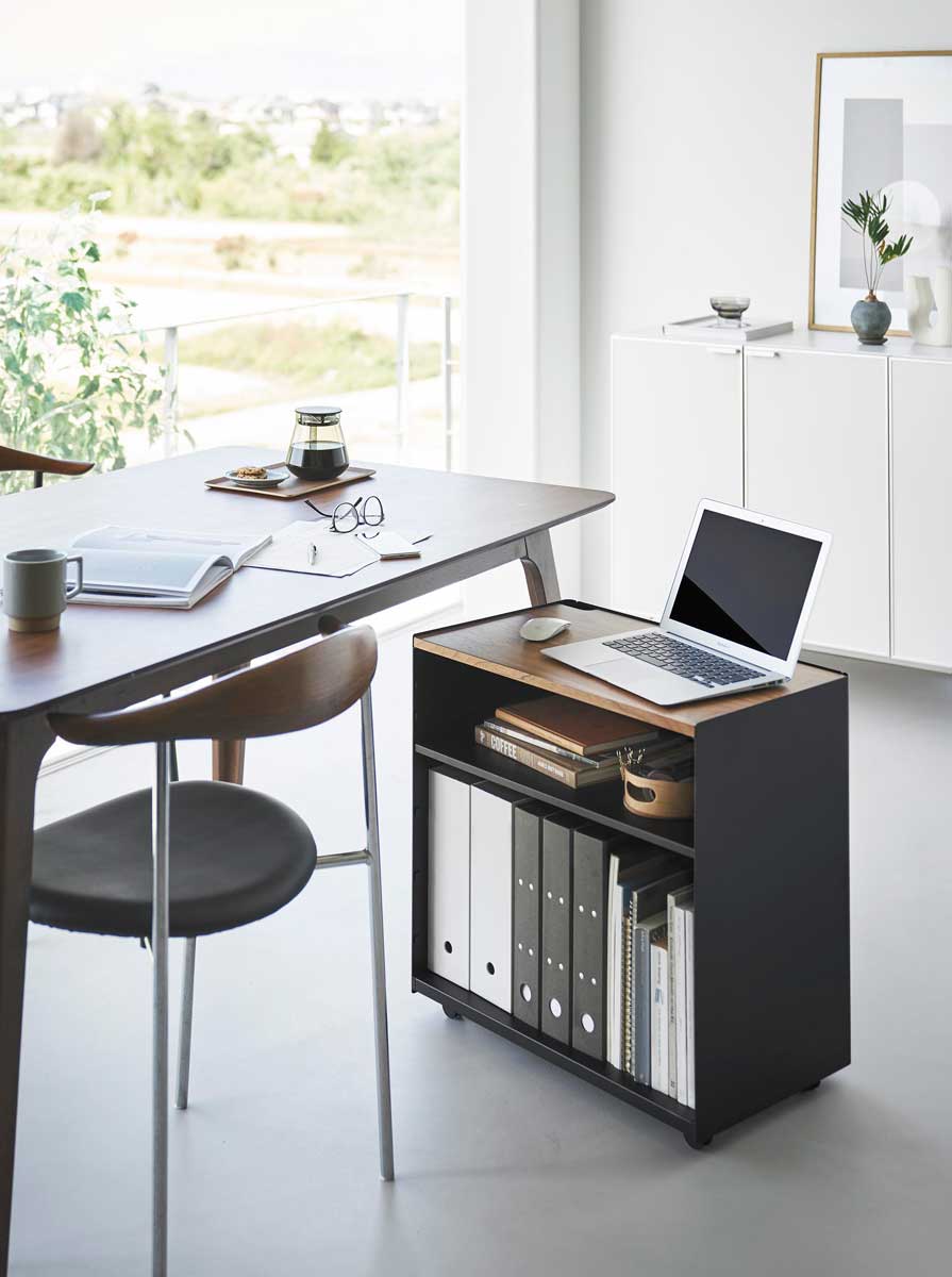 隠して収納できるテレワークワゴン。リビングにもピッタリ、隠して収納できるテレワークワゴンです。最上段は作業台としての使用や、プリンターの設置にもおすすめです。