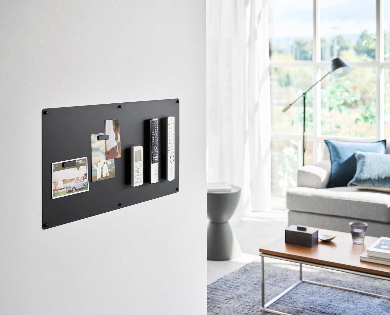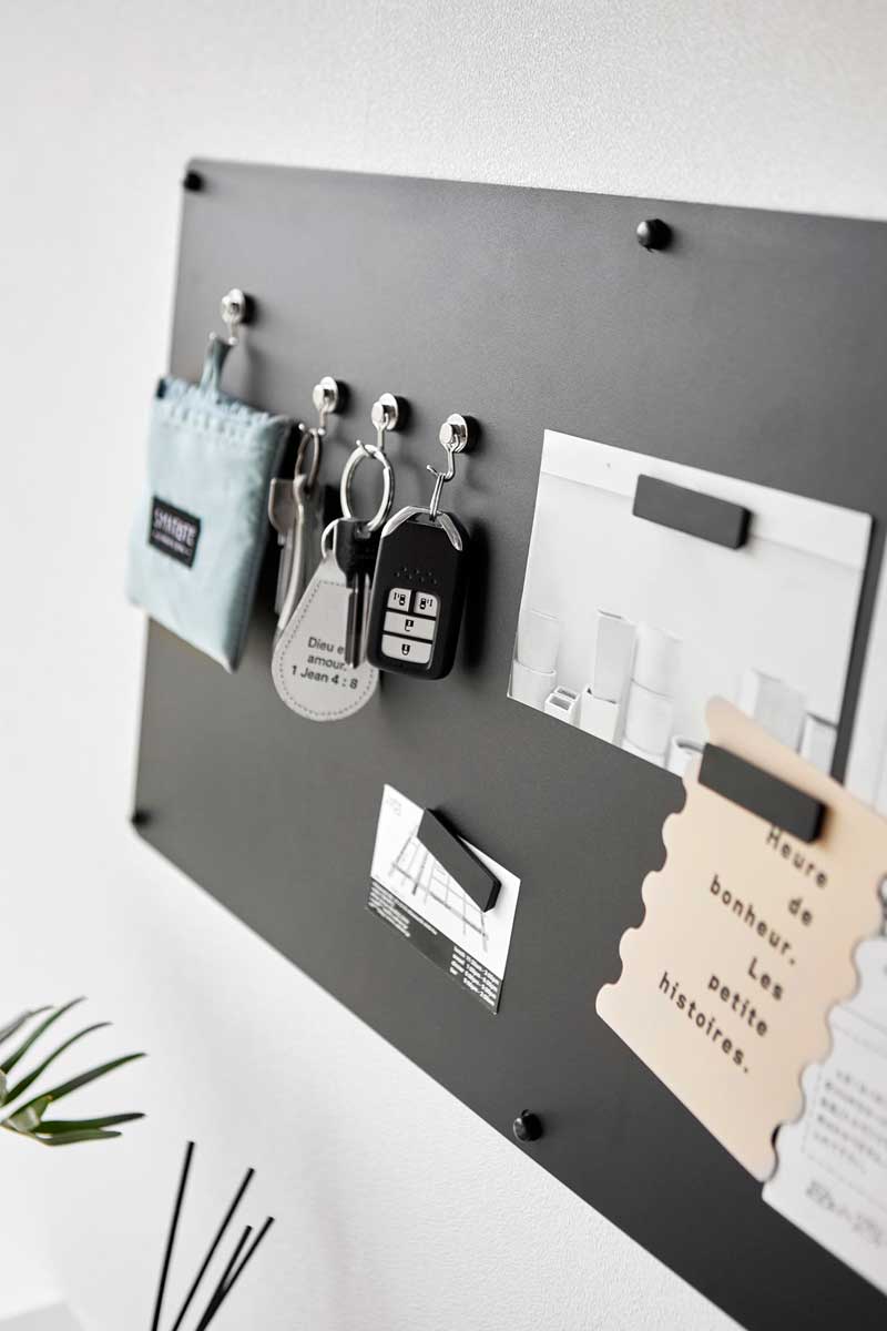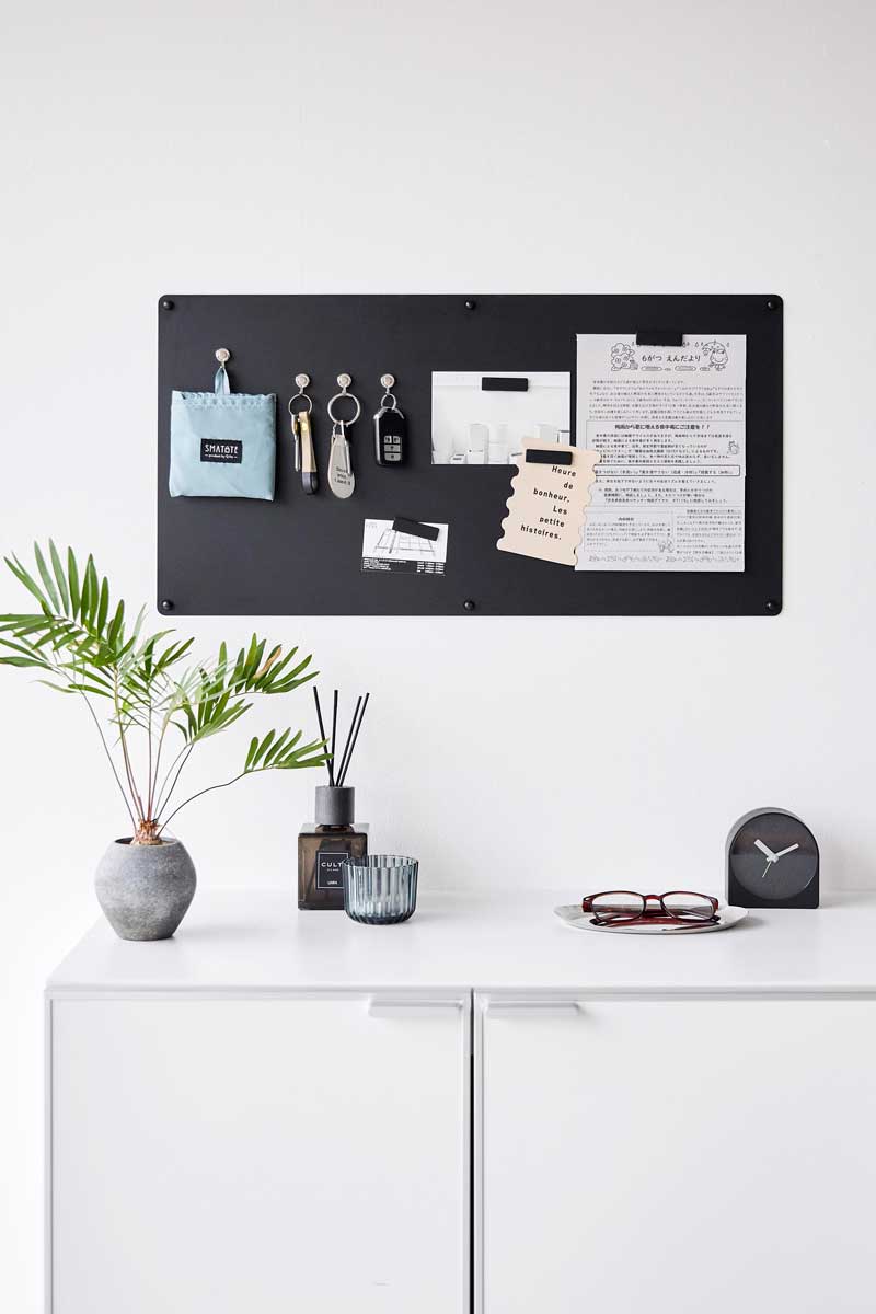 見えやすい場所でプリント類を管理したり、お手持ちのマグネットをリモコンに貼り付けてリモコン収納パネルにしたり、マグネットフックを付けて鍵などの小物の収納スペースにしたりと、様々なシーンで活用できます。付属の木ネジでも取り付け可能です。マグネットも4個付き。