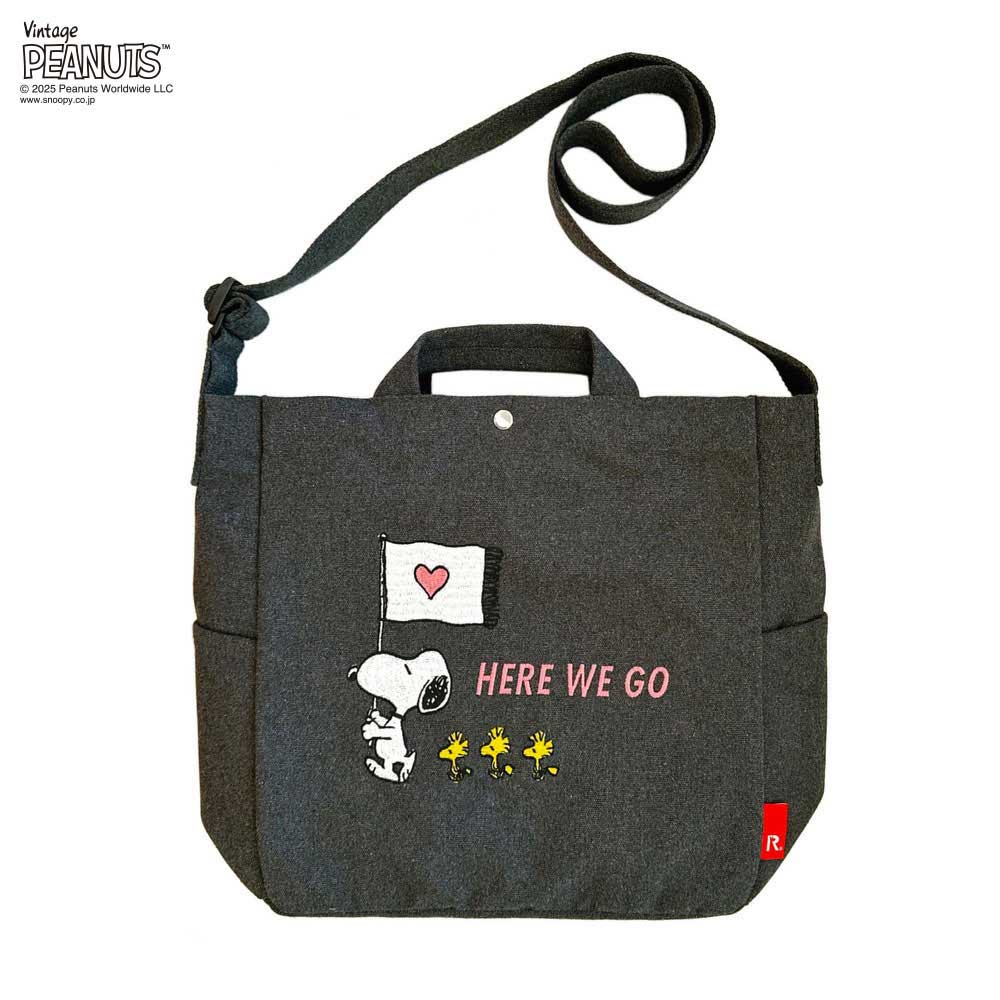 2025新作 スヌーピーバッグ ショルダーバッグ ROOTOTE Vintage PEANUTS MEDIUM 8441 ルートート IP.ミディアム.2way.ピーナッツ-0J リサイクルコットン グレー