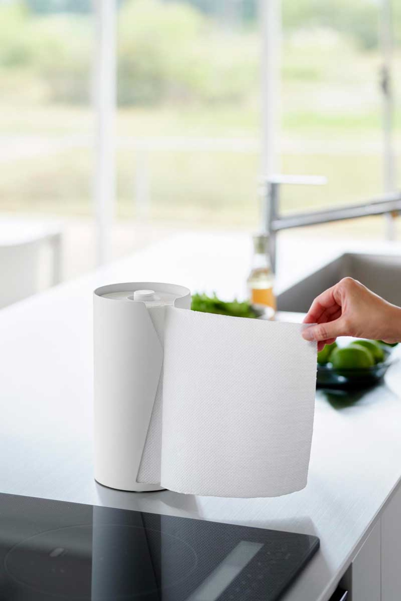 片手でカット隠せるキッチンペーパーホルダー タワー 縦タイプ