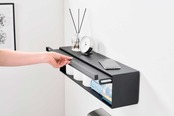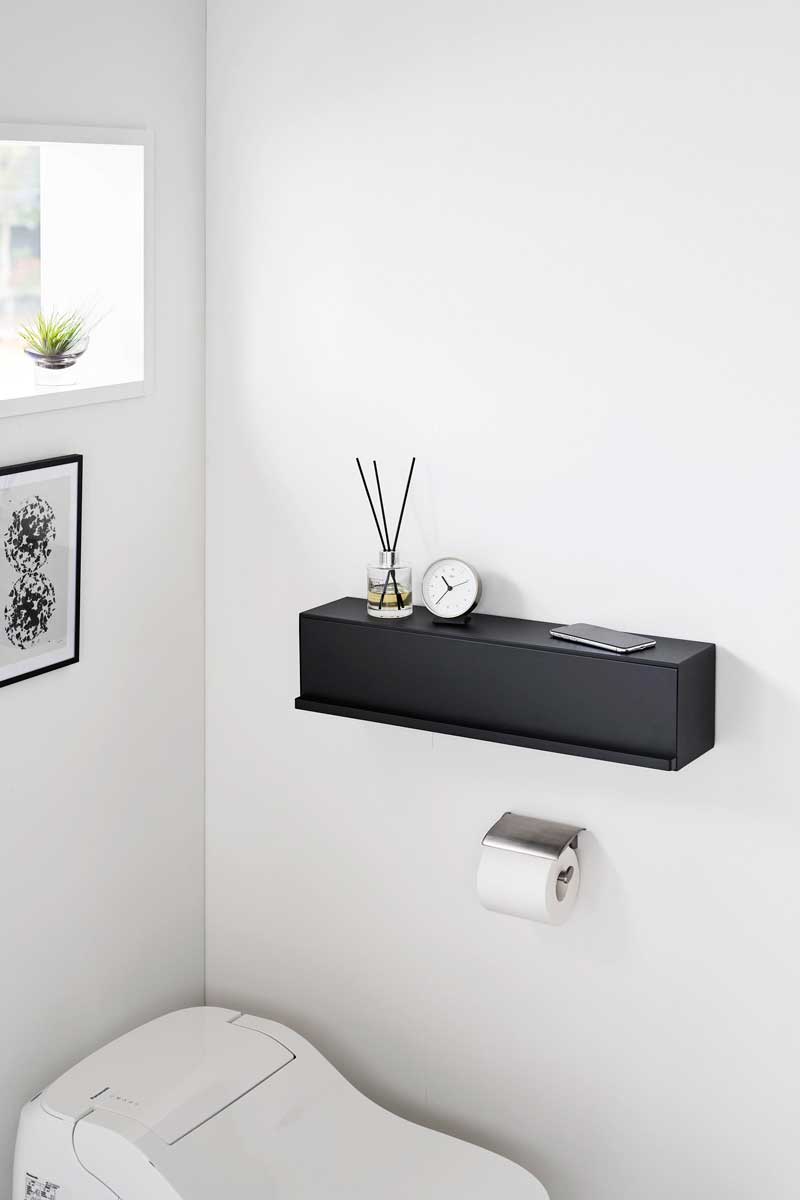 トイレ用品などのストックをスッキリ隠して収納、石こうボードピンでお好みの位置に取り付け可能な収納棚です。石こうボードピンの他に、木ネジでも取り付け可能です。