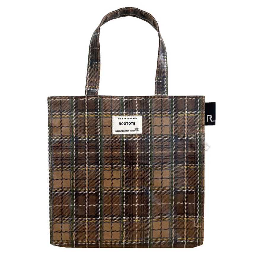 2025新作 ミニトート ROOTOTE SQUARE 3606 ルートート EU.スクエア.ラミネート-T チェック ブラウン