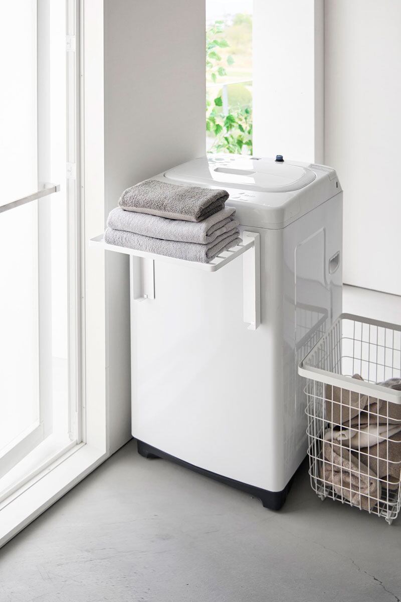 折りたたみ棚 山崎実業 tower タワー 使いやすい高さに開くマグネット洗濯機横折り畳み棚 10019 ホワイト