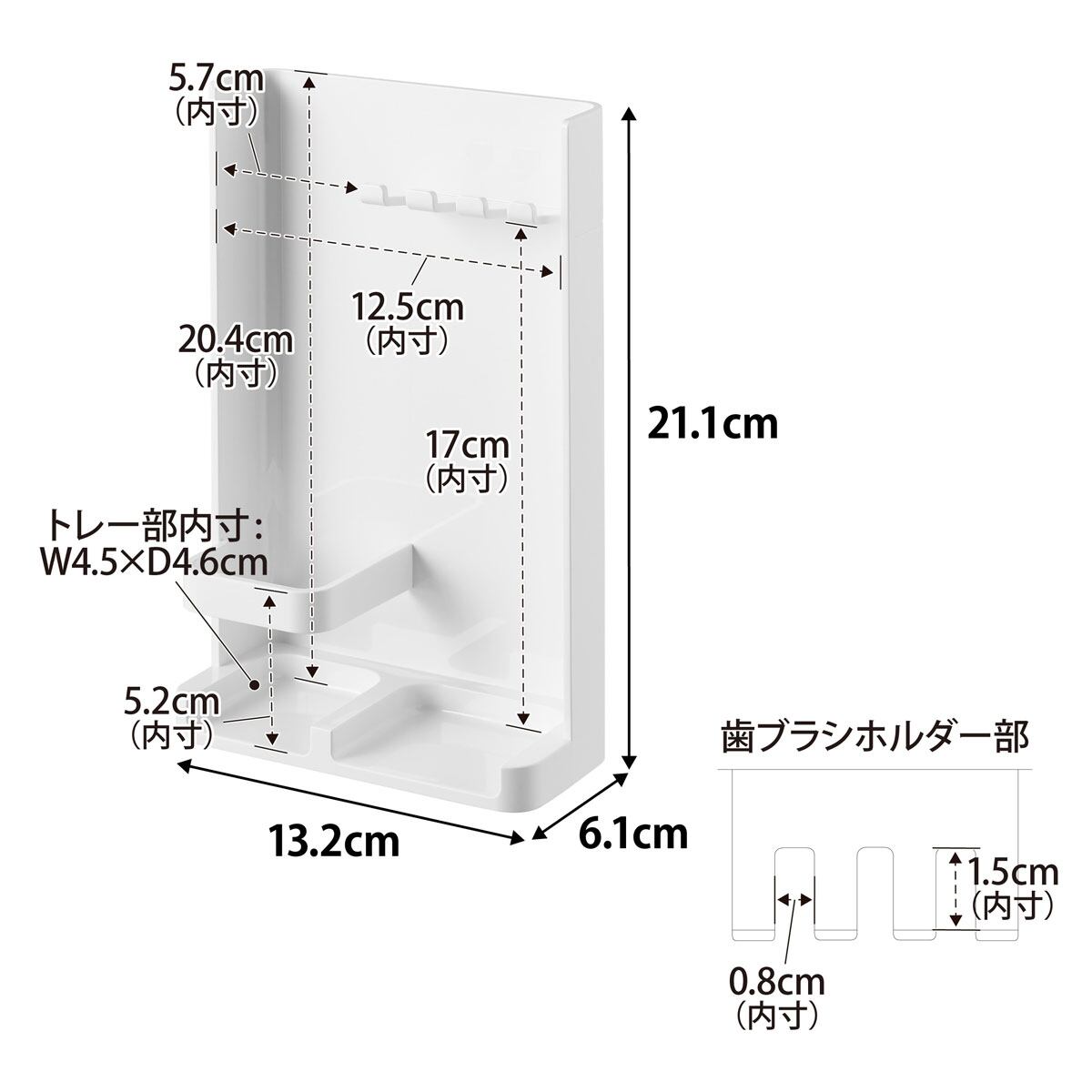 ・内寸サイズ:約W8xD15xH170mm(歯ブラシホルダー部1つあたり)/約W45xD46xH52mm(チューブホルダー部)