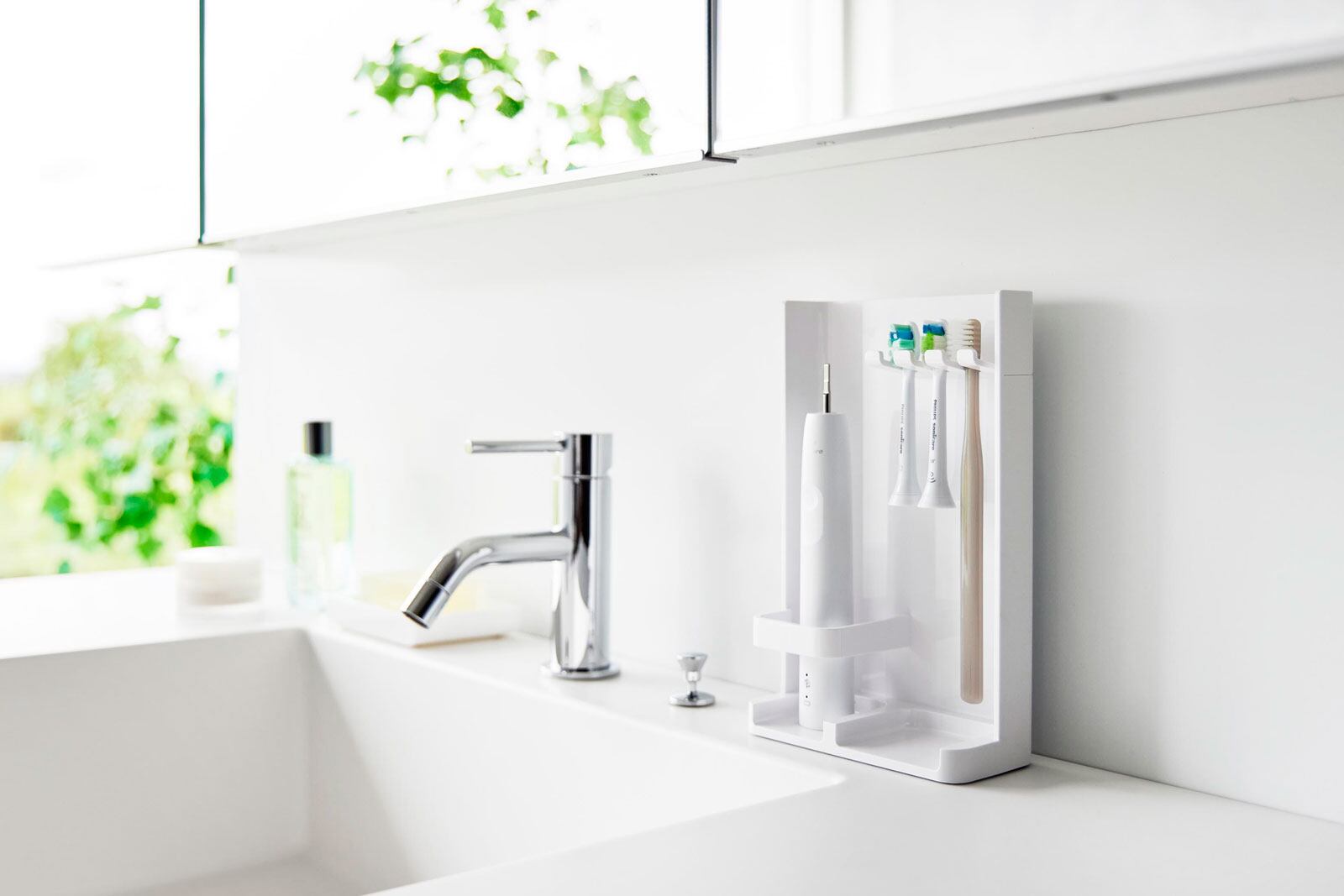 歯ブラシスタンド 山崎実業 tower タワー 目隠し歯ブラシ&チューブスタンド スリム 10025 ホワイト