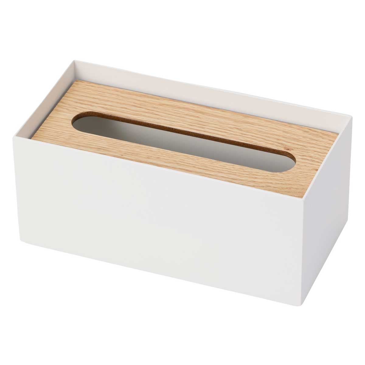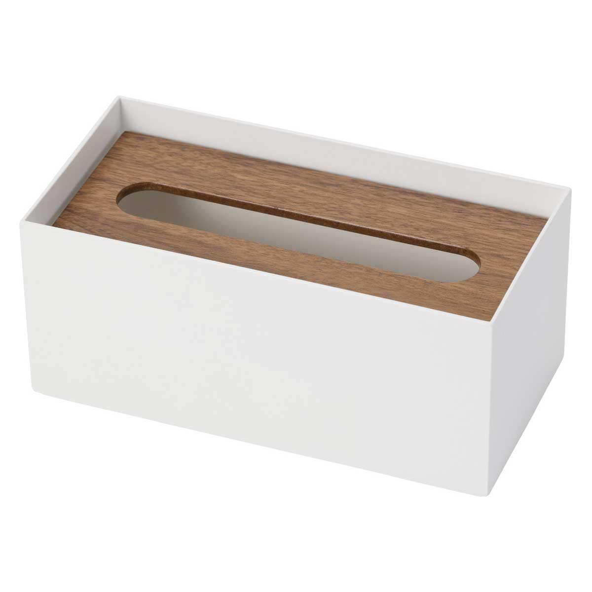 プラスチック本体と木蓋の異素材ミックスが目を引くティッシュボックスです。天然木を使ったリバーシブル木蓋はインテリアに合わせて使い分けができます。ボックスティッシュ、ソフトパックどちらにも対応したサイズ感です。