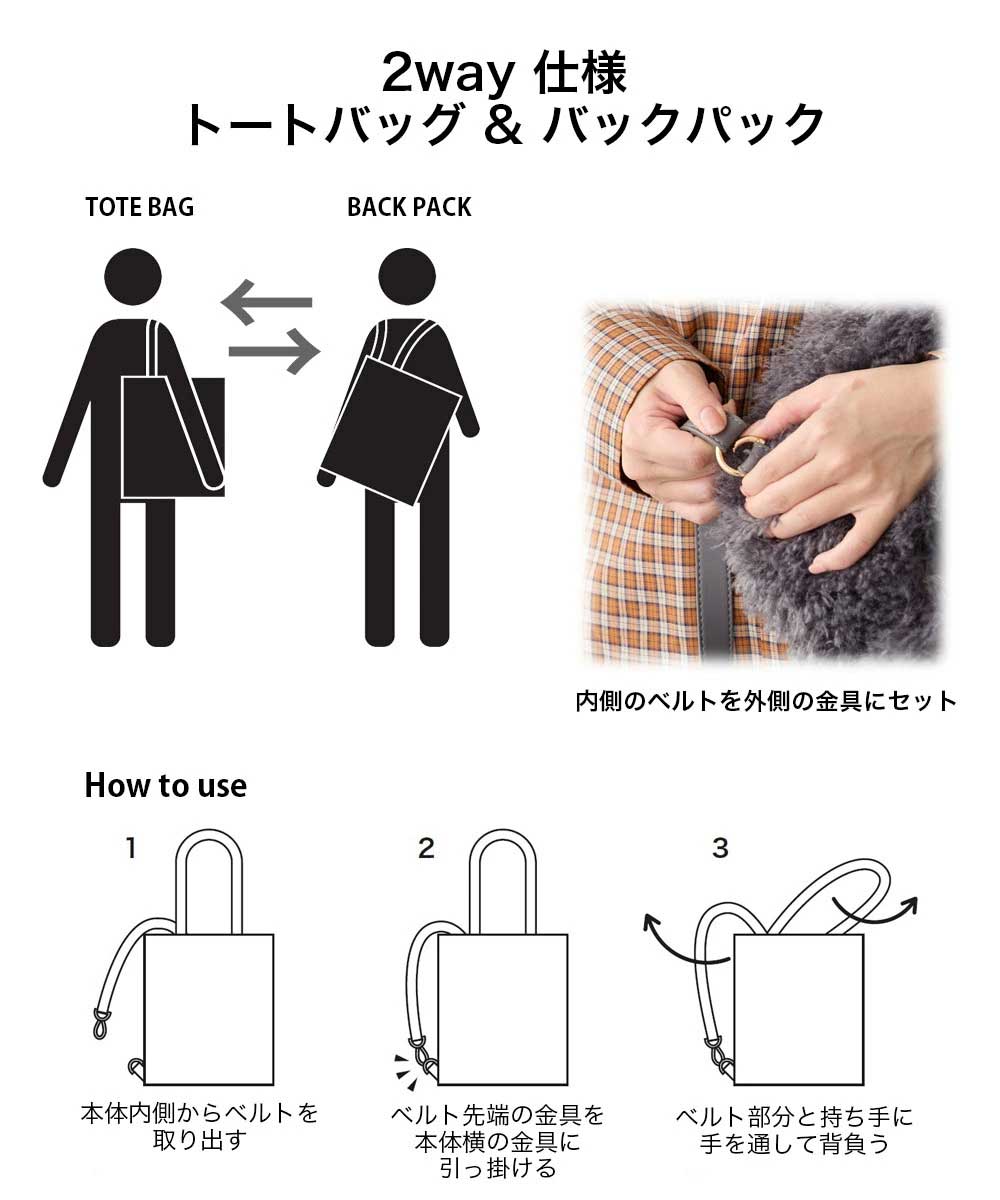荷物の多いお出掛けにもクリブティッドを連れてお出かけ。背面には大きめのルーポケットがあり、すぐ取り出したい物の収納に。トートを肩掛けしたまま出し入れもできます。トートとしてだけでなく、リュックとしても。内側のベルトを外側の金具にセット。ベルト部分と持ち手に手を通せば、背負いでも使えます。ひとつひとつ表情が異なるあなただけのクリプティッド。おそとでもおうちでも、そっとあなたを見守ります。