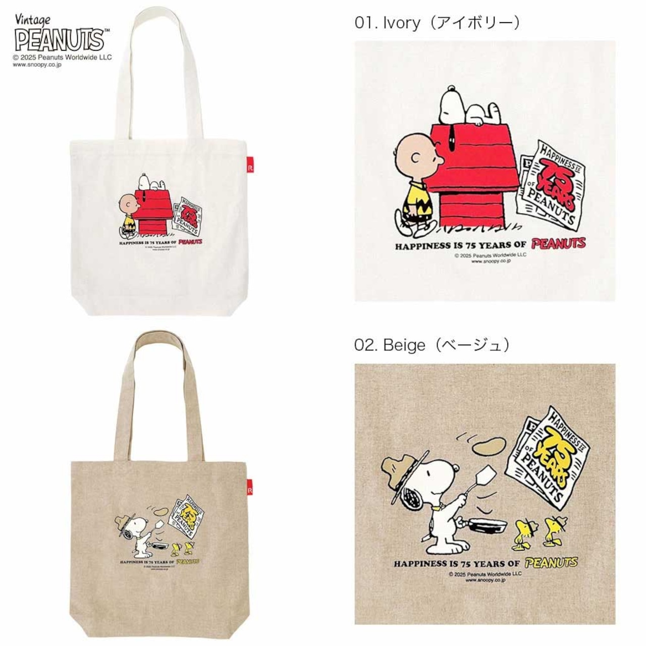 2025新作 スヌーピーバッグ トートバッグ ROOTOTE Vintage PEANUTS TALL 8443 ルートート IP.トール.ピーナッツ-0T アイボリー