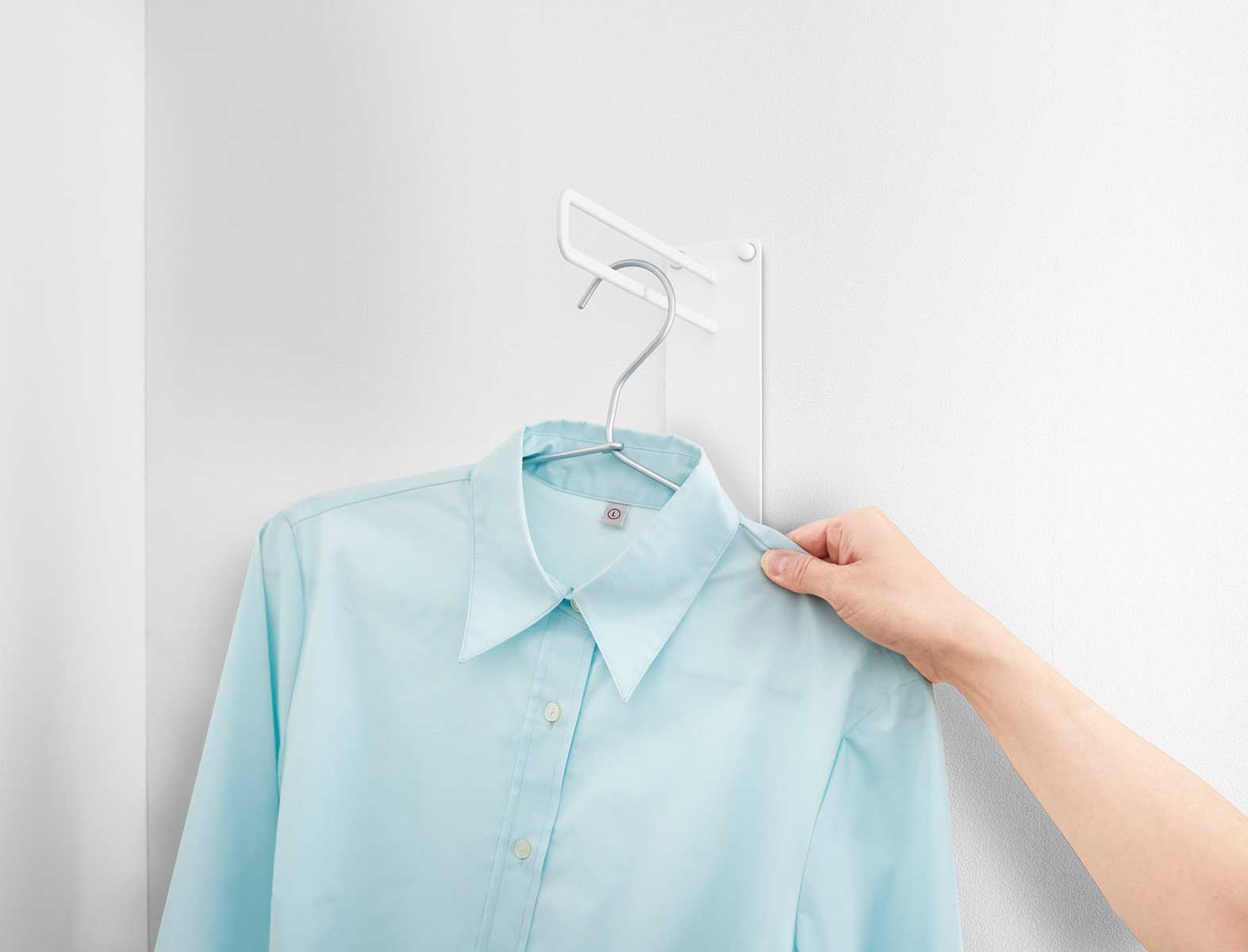 洗濯物の一時掛けに便利なコンパクトハンガー。付属の石こうボードピンや木ネジを使って壁面に簡単に取り付けられる、ちょい干しハンガーです。洗濯後の衣類をサッと一時掛けできて便利です。