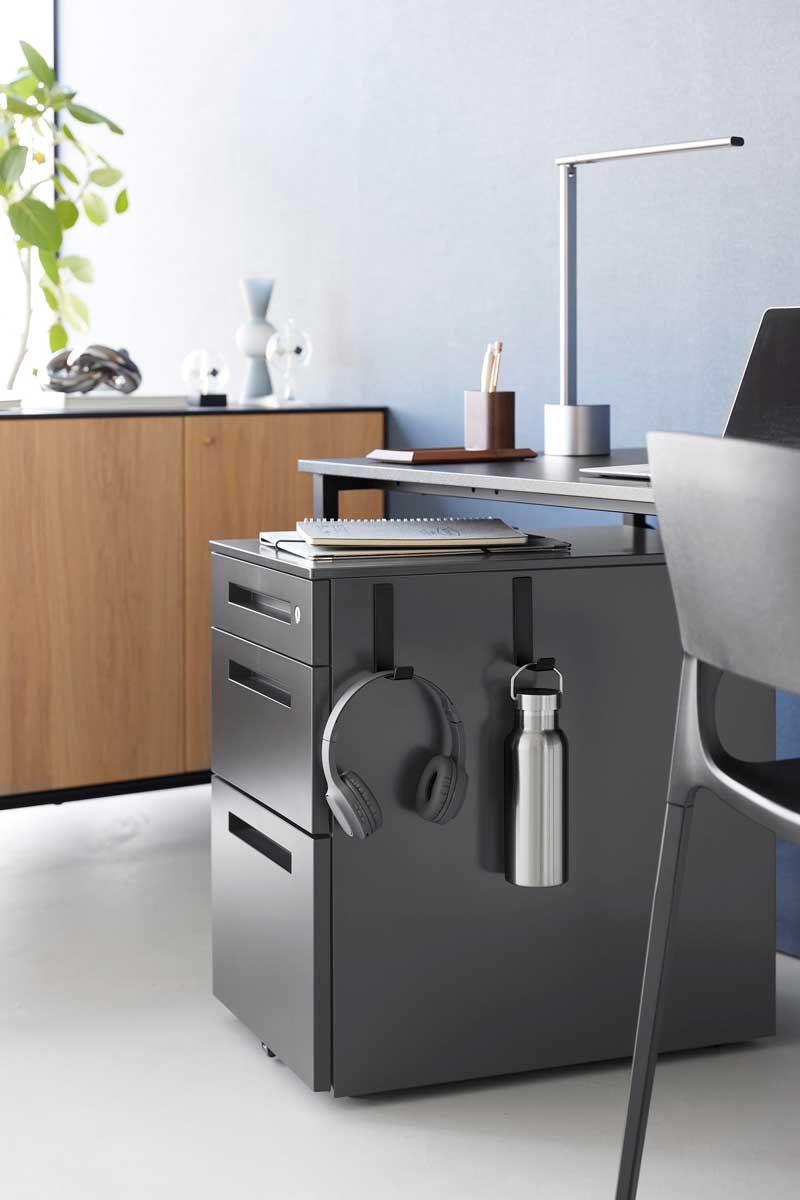 マグネットで貼り付けて簡単に設置できる、コンパクトなハンガーフック2個組。強力なネオジムマグネットを使ったLサイズのフックで耐荷重は1.25kgあります。長めのフックなので奥行きのある物も掛けやすく、スチールワゴンに取り付けてヘッドホンや水筒などの収納にもおすすめです。