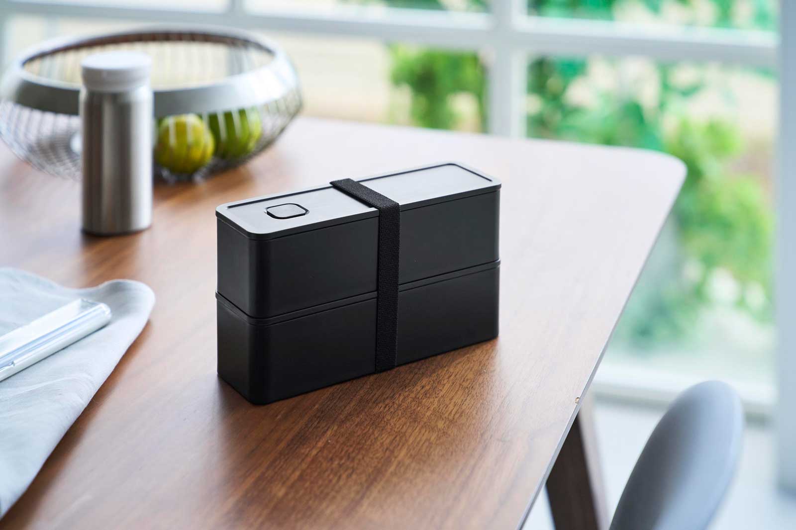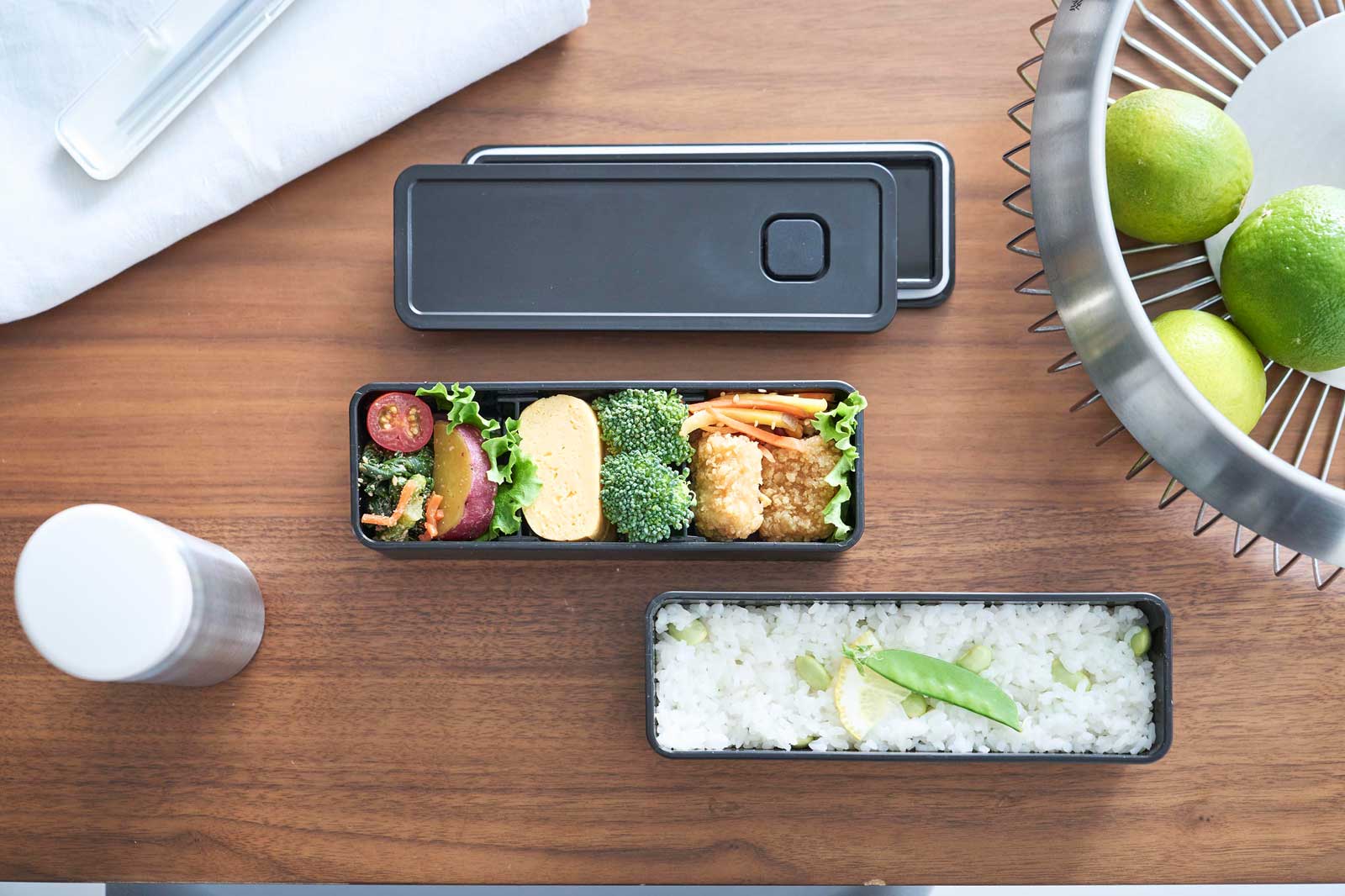 密閉できる2段式のランチボックスは、食洗機に対応しているので、お手入れも簡単で、すべてのパーツを分解して洗えるので衛生的です。