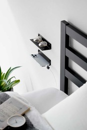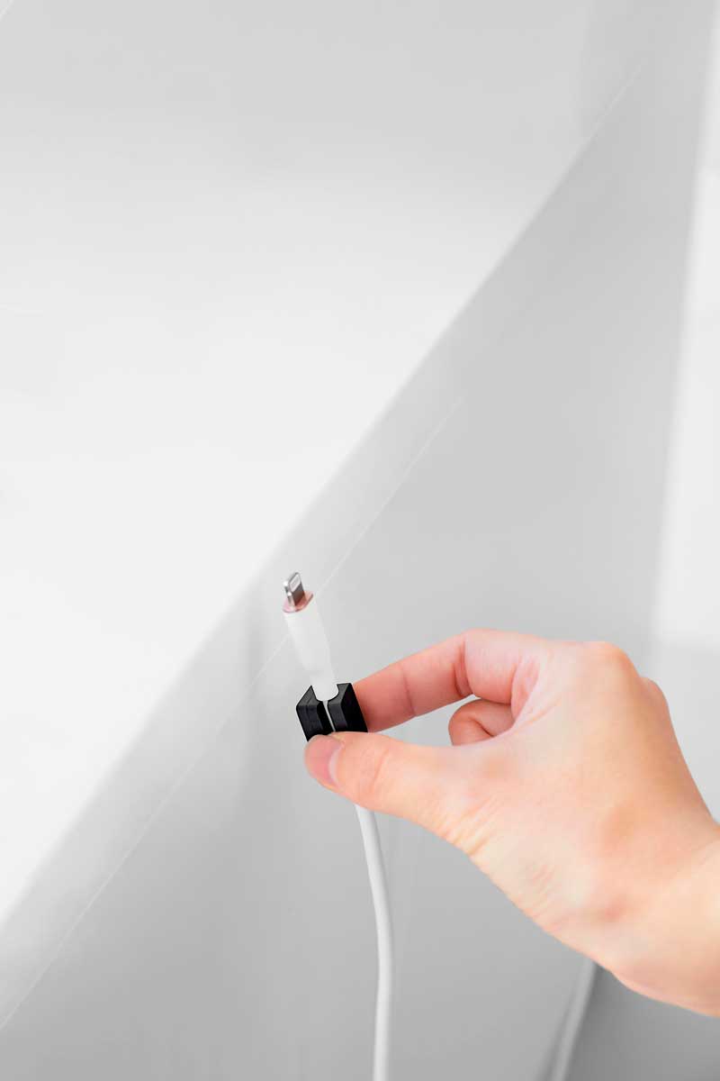 メガネラック以外にも、スマホ置きとしての使用もおすすめです。充電ケーブルを取り付けられる、マグネットケーブルホルダー付き。スチール製の本体にケーブルの先端を貼り付けておけるので、すぐに充電できて便利です。