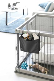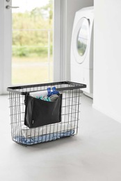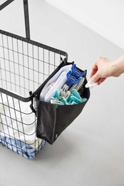 洗濯カゴにポケットを取り付けて、ピンチやネットなどの洗濯小物をまとめて収納できます。背面には着脱しやすいバックル付きで、ベルトの長さも調節可能なので、様々なランドリーバスケットに対応します。