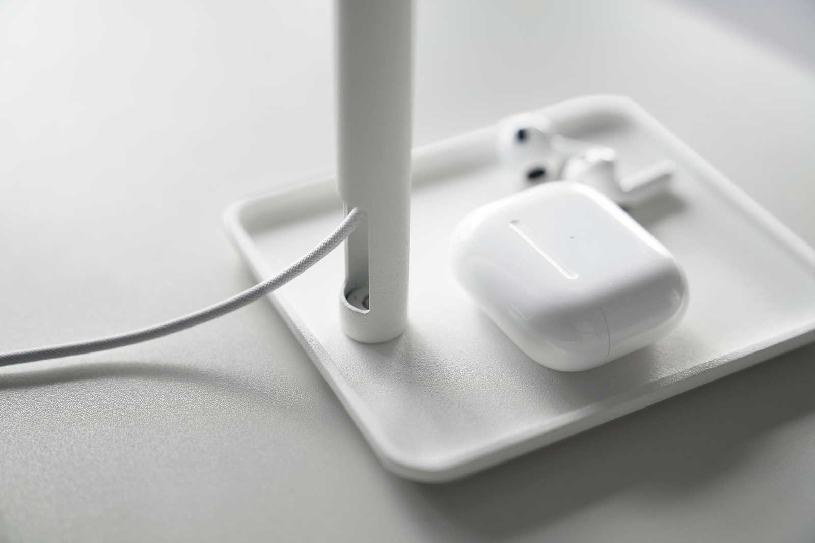 スタイリッシュなデザインのトレー付きスマートフォンスタンド。充電しながらハンズフリーでスマートフォンの操作ができ、充電ケーブルもすっきりと隠せます。高さがあり画面が見やすいアーム式。