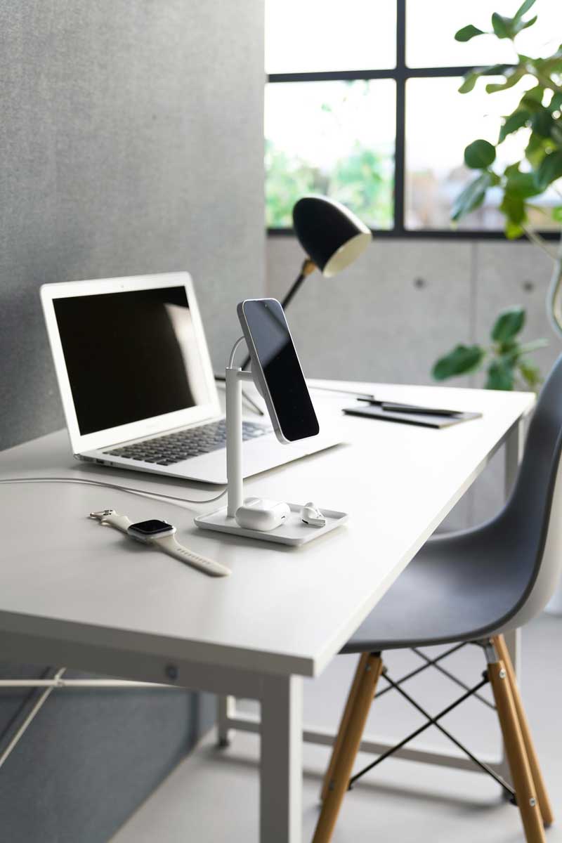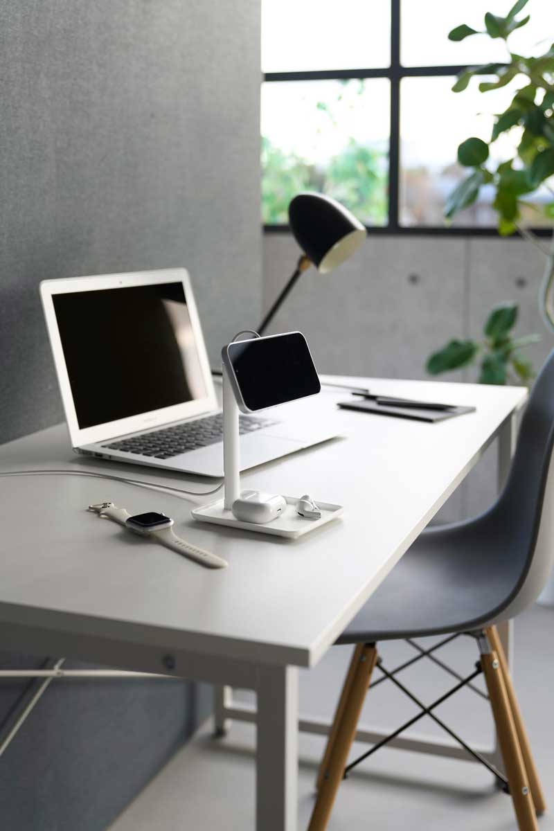 スマホスタンド マグネット式ワイヤレス充電器用 山崎実業 tower タワー トレー付きスマートフォン充電スタンド 10088 ホワイト
