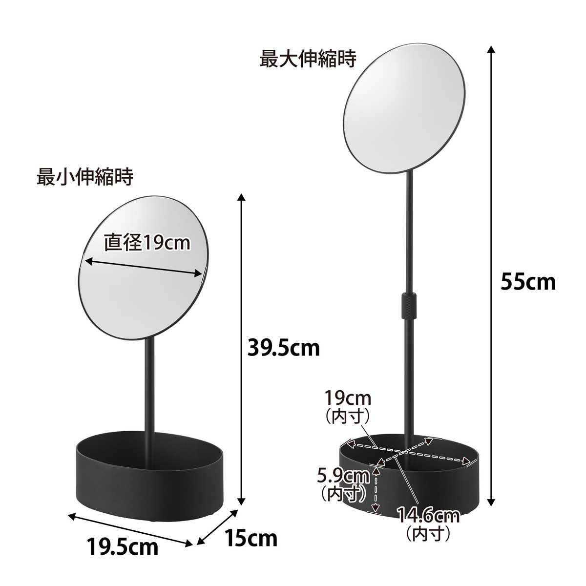 ・サイズ:約W195xD150xH395-550mm/直径約190mm(ミラー)