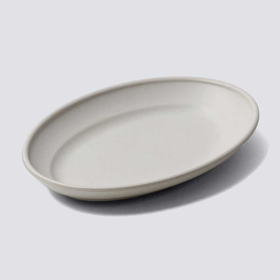 これだけでいい、日常使いのスタンダード。昭和の洋食器を思わせるオーバル皿を、割れにくく、欠けにくい食器として、b fiber素材で現代に再現。料理に合わせて使い分けできる、17/23/30cmの3サイス(S/M/L)を展開。盛り付けが苦手でも、料理が自然と映えるオーバルフォルムで、丸皿よりもスペースを取らず、お盆やトレイにも並べやすいかたち。日常の食卓からおもてなしまで、幅広く活躍します。