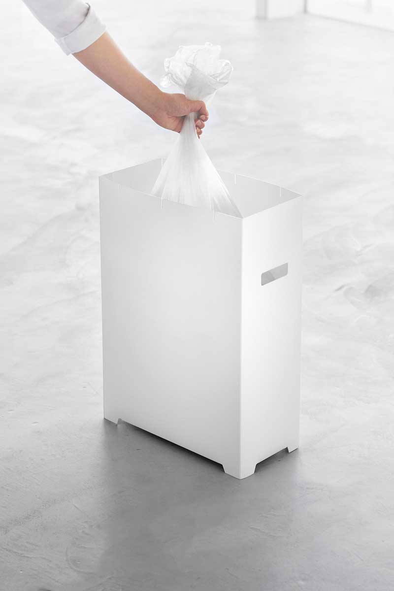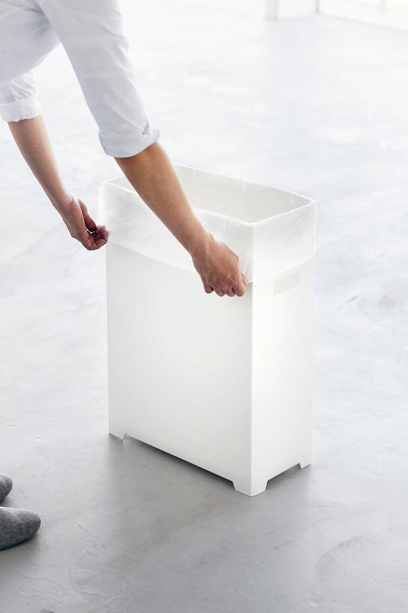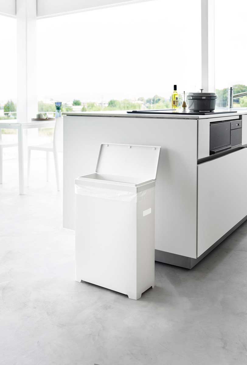 45リットルサイズのゴミ袋がぴったり収まるスリムな横開き蓋付きゴミ箱です。蓋が横に開くので高さが抑えられパントリーや食器棚下スペースにも収納できます。複数並べてペットボトル・空き缶・資源ゴミなどの分別にぴったり。