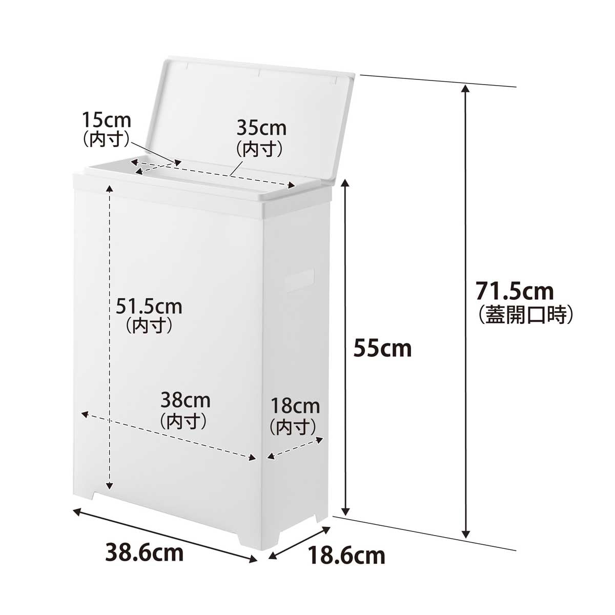 ・サイズ:約W186xD386xH550mm/約H715mm(蓋開口時)