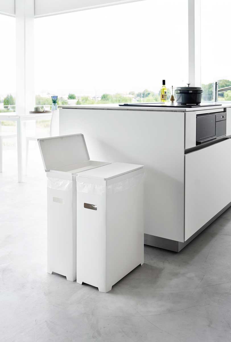45リットルサイズのゴミ袋がぴったり収まるスリムな横開き蓋付きゴミ箱 2個組です。蓋が横に開くので高さが抑えられパントリーや食器棚下スペースにも収納できます。複数並べてペットボトル・空き缶・資源ゴミなどの分別にぴったり。