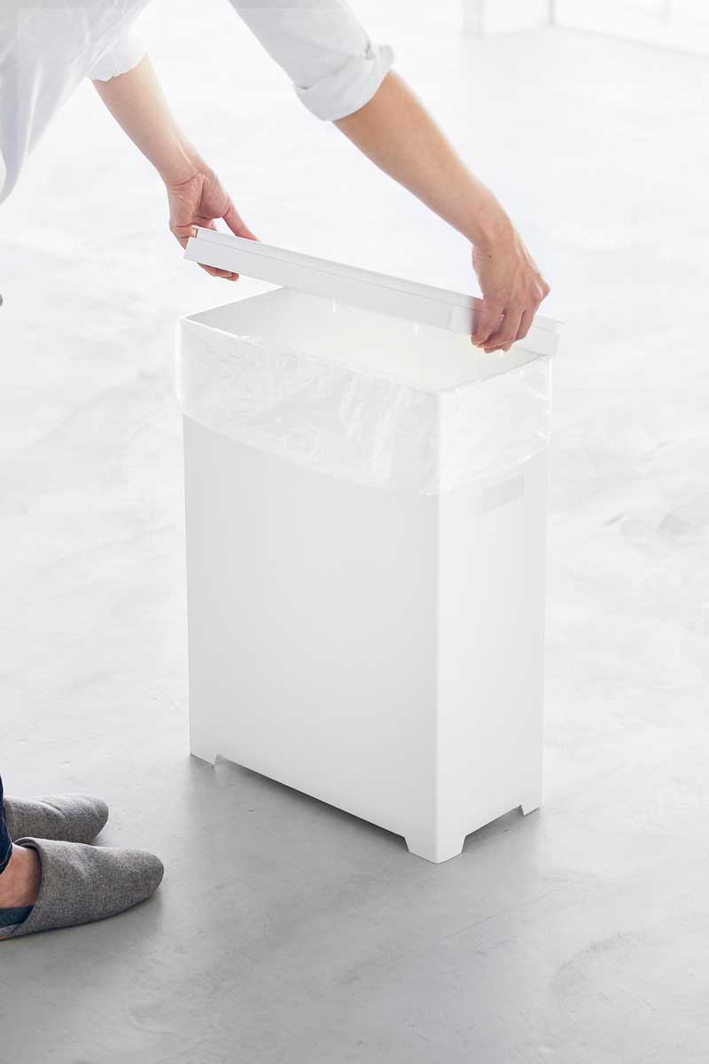 蓋付きなので、中身が見えずにおいを防いで衛生的です。ハンドル穴付きなので移動もラクラク。折りたたんで薄く持ち運べるのでアウトドアにもおすすめです。ゴミ袋を掛けて蓋をするだけなのでゴミ袋の取り換え作業が簡単です。