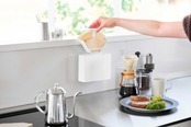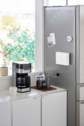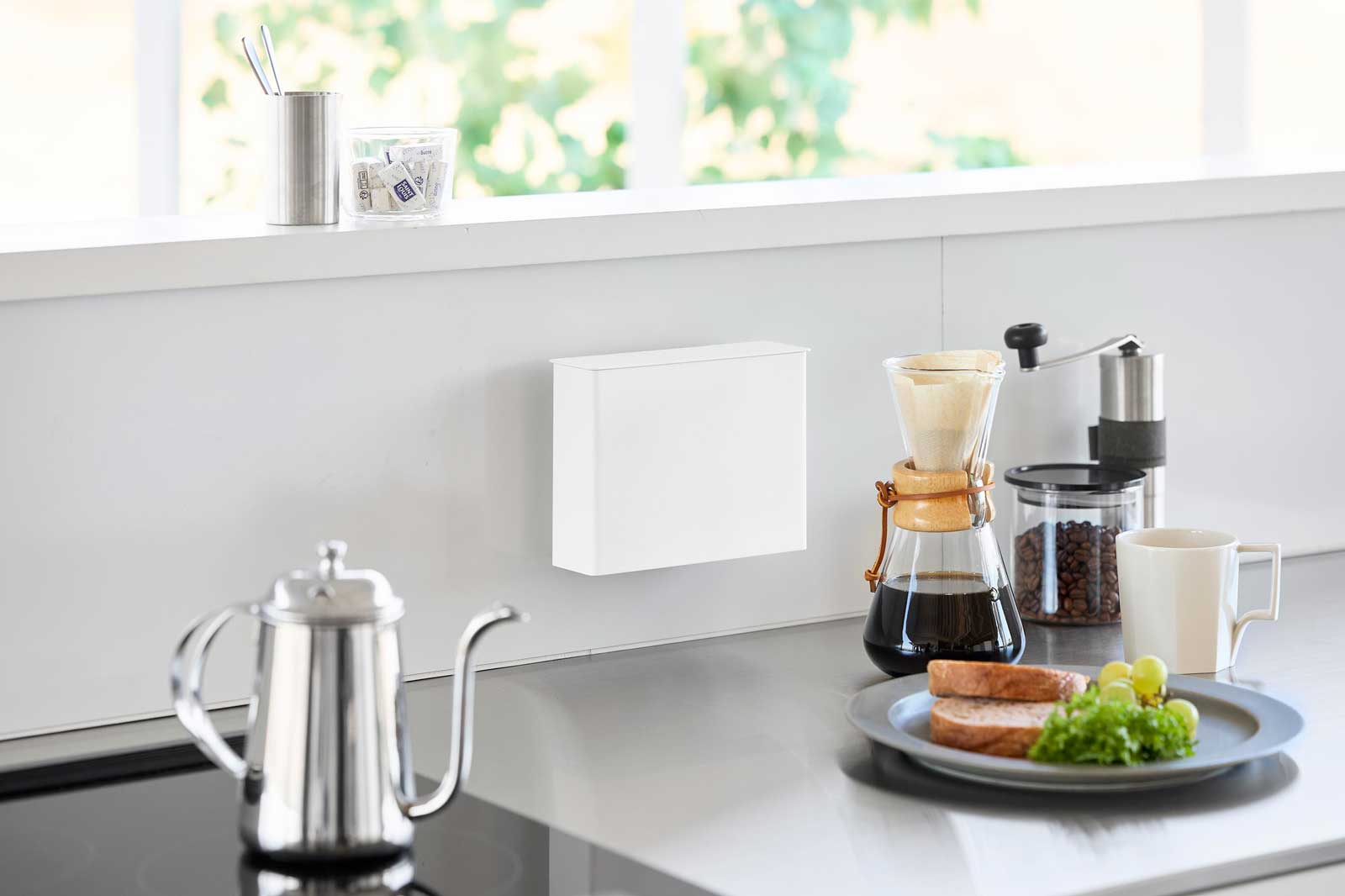 マグネットで浮かせて設置できるコーヒーペーパーケース。マグネットで簡単に取り付けられる、コーヒーペーパーフィルター用の収納ケースです。蓋付きなのでほこりが入りにくく、清潔に保管できます。