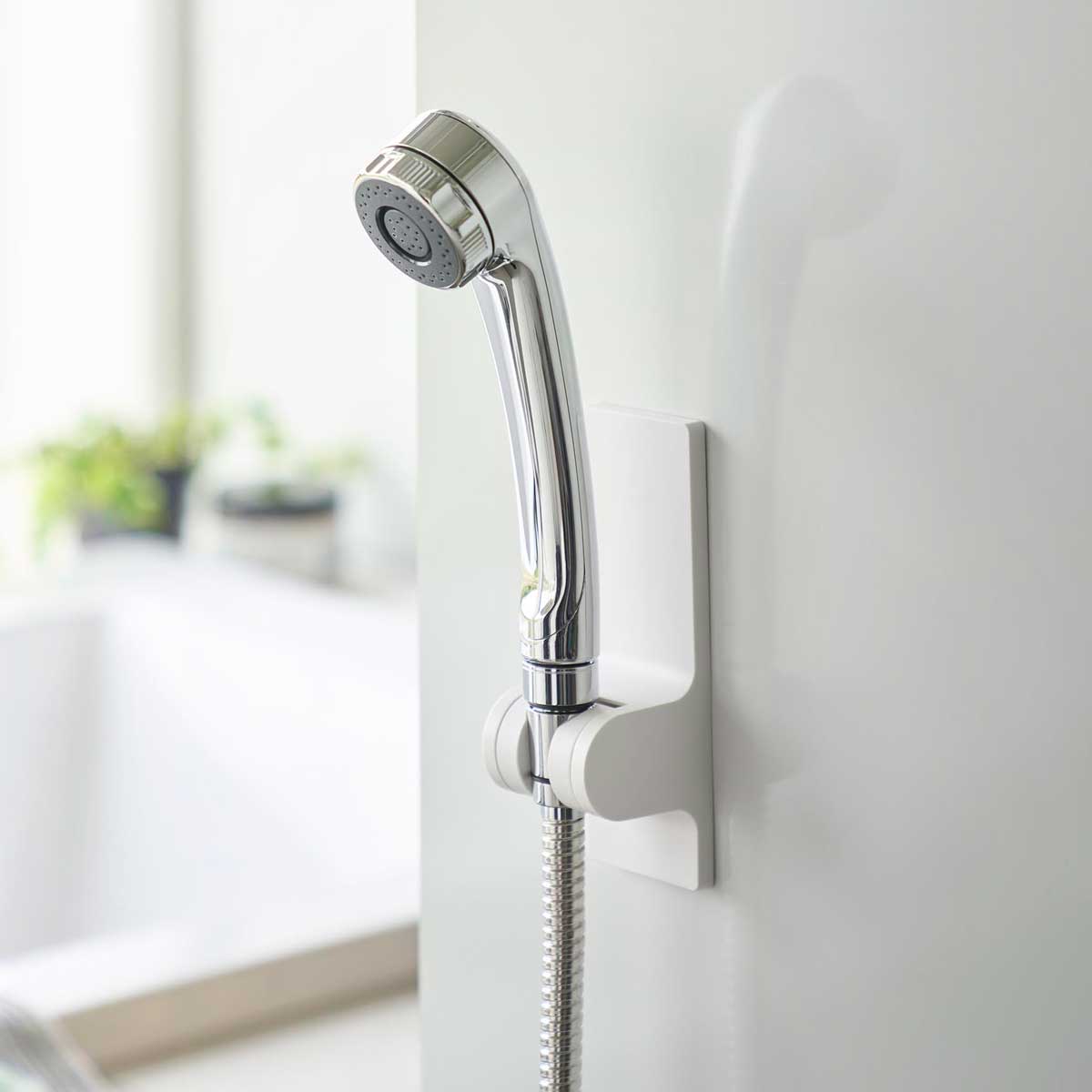 マグネットでお好みの位置に簡単取り付け。10度ごとに3段階の角度調節ができる便利なシャワーホルダーです。内側のストッパーで、水圧がかかってもズレにくく、使いやすい仕様です。