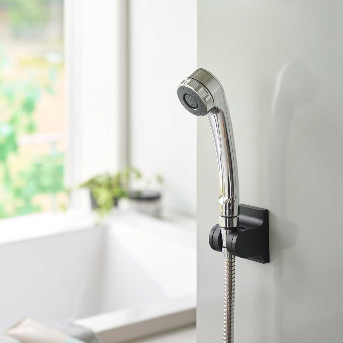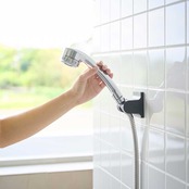 フィルムフックでお好みの位置に簡単取り付け。10度ごとに3段階の角度調節ができる便利なシャワーホルダーです。内側のストッパーで、水圧がかかってもズレにくく、使いやすい仕様です。浴槽の壁面に取り付ければ、お子様やペットのシャワーの際にも便利です。