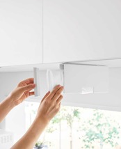 ・取り付け可能な吊り戸棚:棚板の厚さ14-20mm、棚板の幅36mm以上、棚板の奥行き270mm以上、扉と棚板との隙間3mm以上が必要です。 ※設置場所のサイズや厚さや形状、材質によっては取り付けできない場合があります。 ※ガラス戸へのご使用はお避け下さい。
