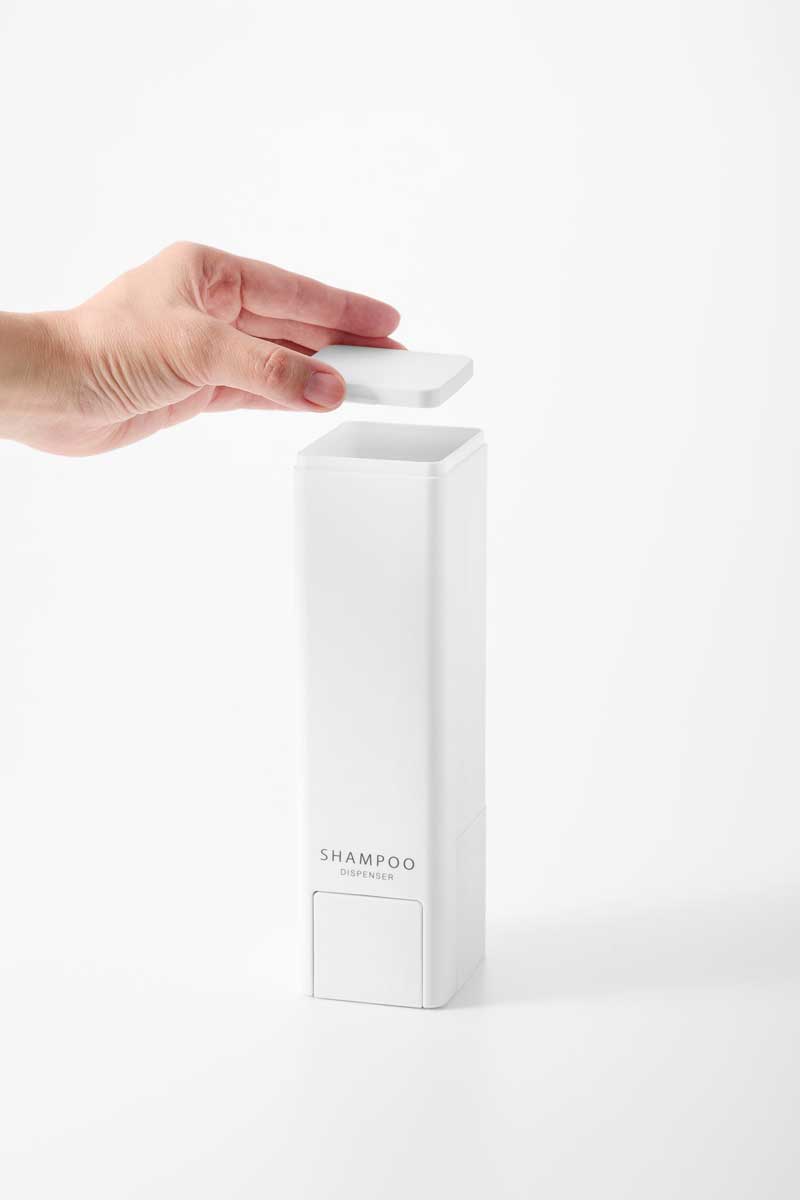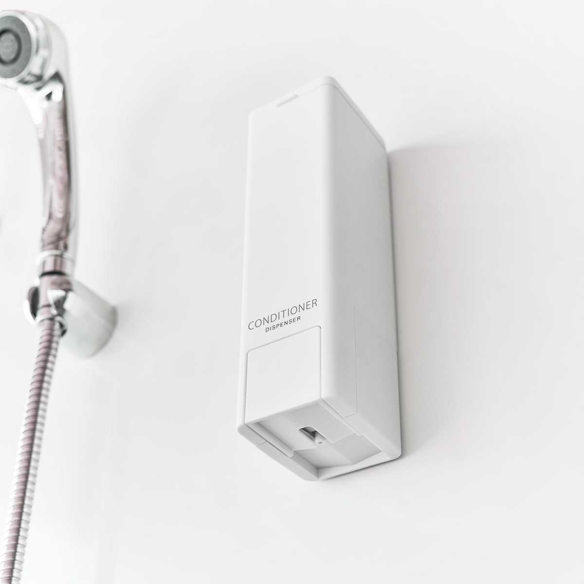 マグネットで浴室壁面に簡単に取り付けでき、片手で押すだけで、下から出せるディスペンサーです。下から出る仕様なので最後まで使い切りやすく、蓋が外れるのでお手入れが簡単で、詰め替えもスムーズに行えます。