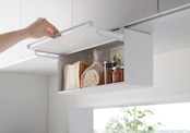 ・取り付け可能な吊り戸棚:棚板の厚さ14-20mm、棚板の幅420mm以上、棚板の奥行き150mm以上、扉と棚板との隙間3.5mm以上が必要です。 ※設置場所のサイズや厚さ、形状、材質によっては設置できない場合があります。なお、ガラス戸へのご使用はお避け下さい。
