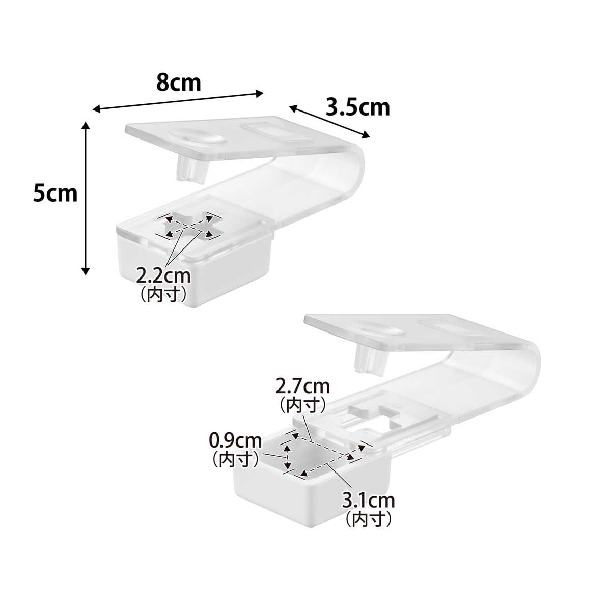 ・内寸サイズ:約W22xD22mm(十字開口部)/約W31xD27xH9mm(受け皿有効内寸)