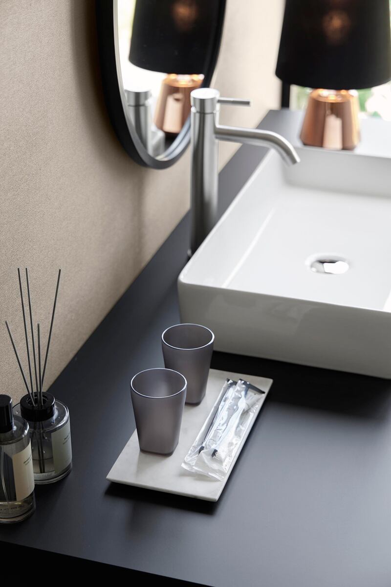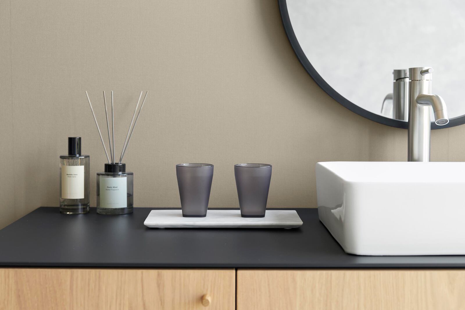 丈夫で熱に強く割れにくい、トライタン樹脂製タンブラー。シンプルで清潔感のあるデザインのタンブラーです。洗面所のアメニティとしてはもちろん、ご自宅でもお使いいただけます。