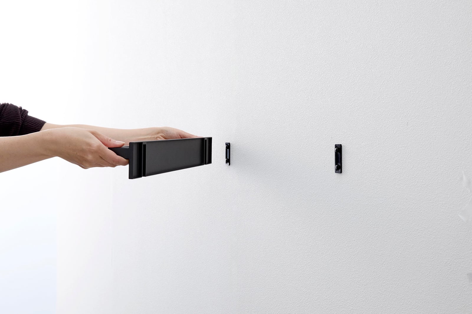 ・取り付け可能な壁(木ネジ使用時):柱 板壁(厚さ1cm以上)、プリント合板(裏側に水平にサンがある場所)、裏に下地材(間柱)が入っている壁