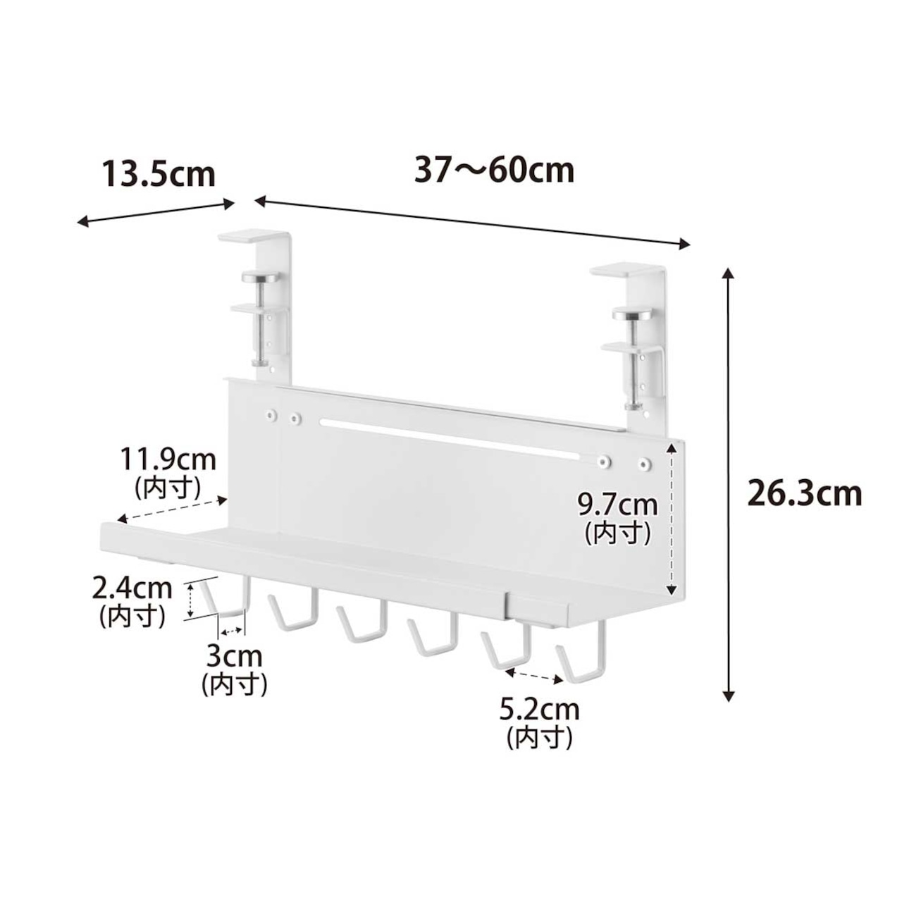 ・内寸サイズ:約W370-600xD119xH97mm(トレー部)/約D30xH24mm(フック部)