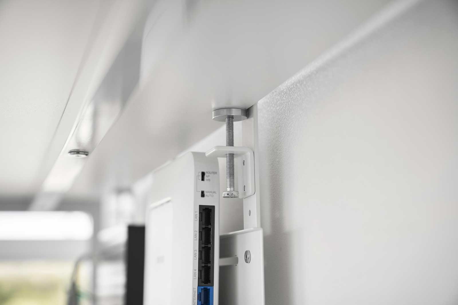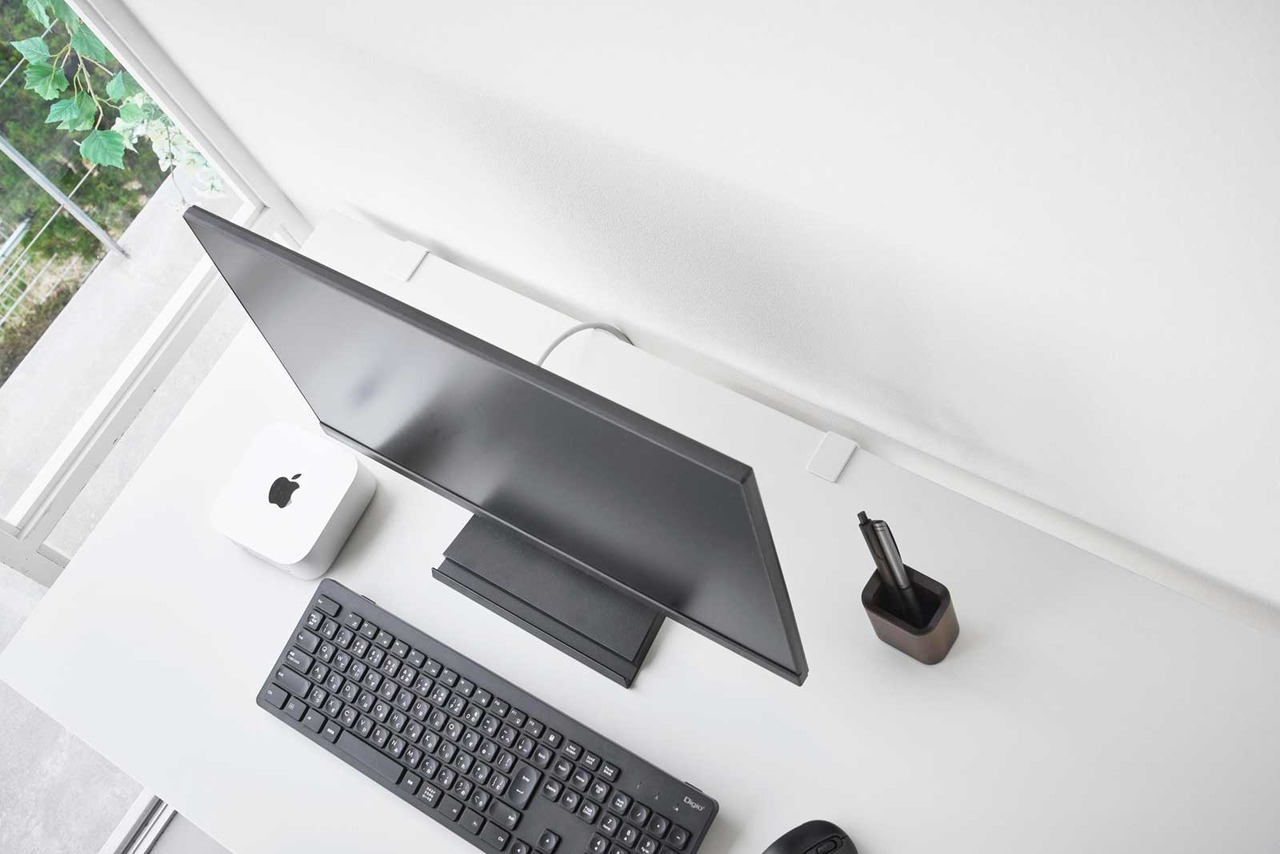 ・取り付け可能な場所:天板の厚さが10-55mm(幕板やパイプ等含む)、幅370mm以上(脚含まず)、奥行45mm以上、天板下の高さ263mm以内に干渉する柱や脚などがない平らなデスク等 ※設置場所の構造や材質、形状によっては取り付けできない場合があります。