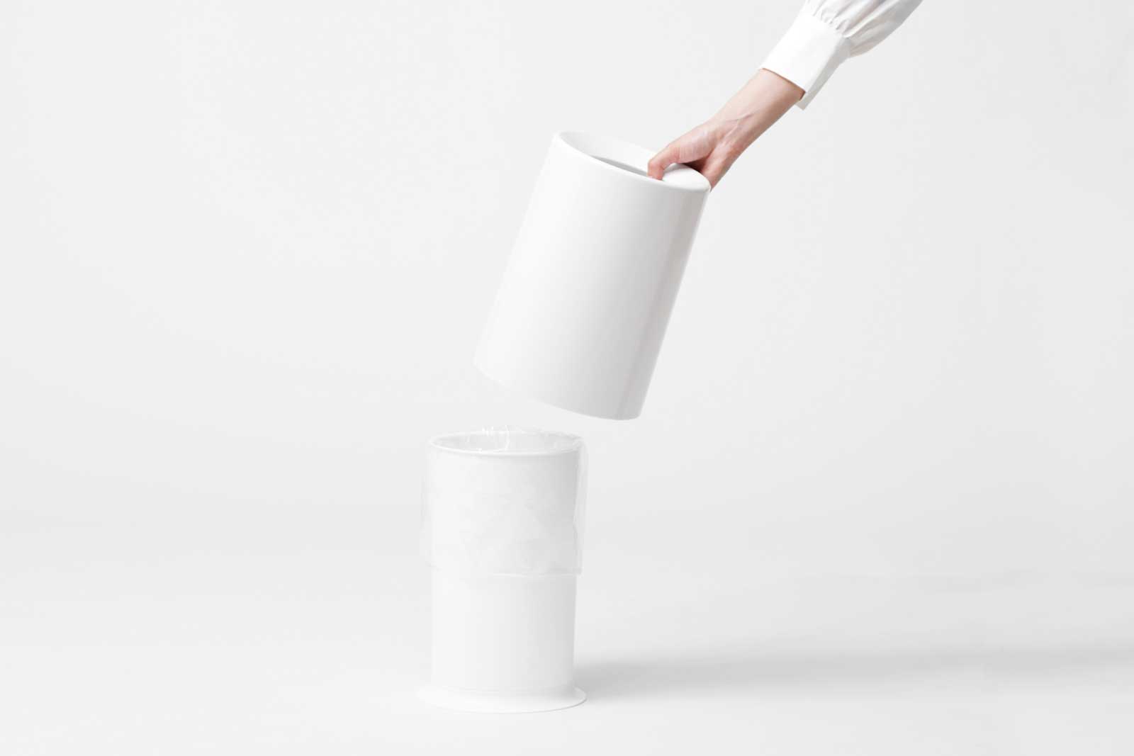 使い方はポリ袋を本体(ボトム)にとりつけ、カバーを被せるだけ。ポリ袋が外から見えず見た目も清潔です。パリで著名なデザインホテルHotel costes(ホテルコスト)ではTUBELORの白が、NYの観光トレンドスポットHi Lineに位置するラグジュアリーホテルNY Standard Hotel(ザ スタンダード)では黒が、日本国内にとどまらず様々なホテルの客室備品として採用されています。