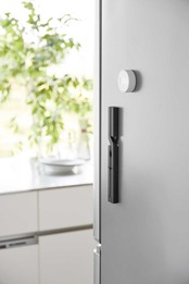 開ける方向がひと目でわかるマーク付きで、迷わず簡単に開けられます。ハンドル部分にマグネットを内蔵してるため、使用後は冷蔵庫の横などに貼り付けてすっきり収納できます。