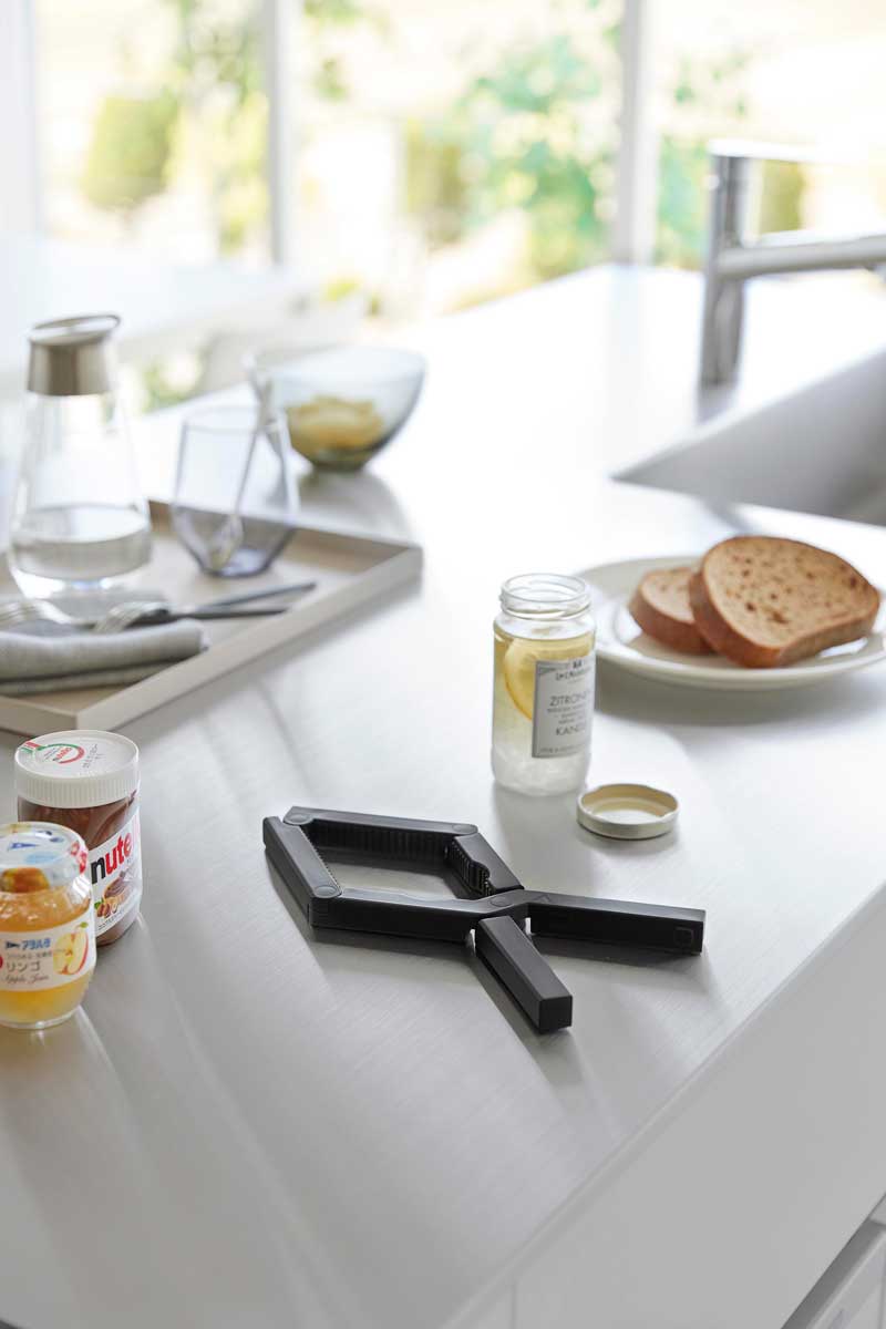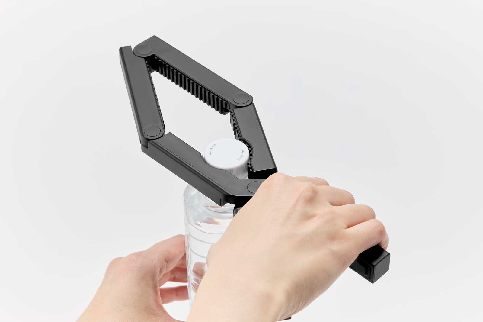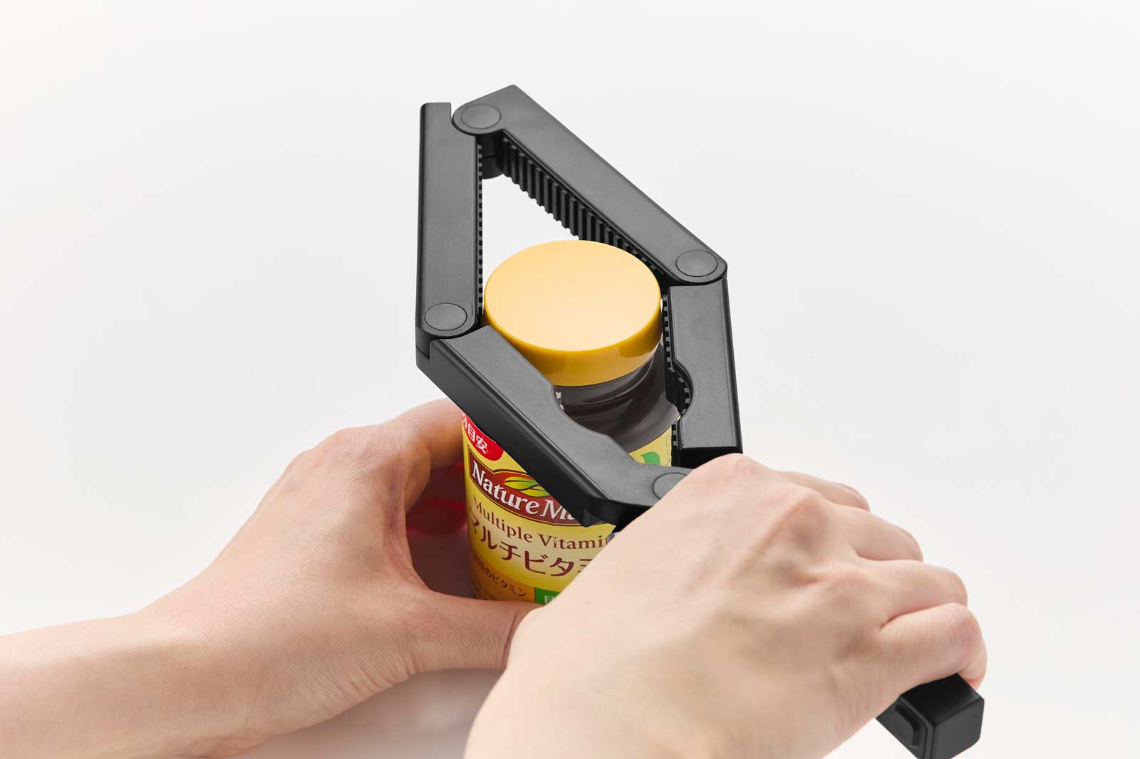 ビンやペットボトルなど、さまざまなサイズの蓋を軽い力で簡単に開けられるマグネットキャップオープナーです。内側の凹凸で蓋をしっかりホールドできるので握りやすく、力の弱い方やネイルをしている方にもおすすめです。