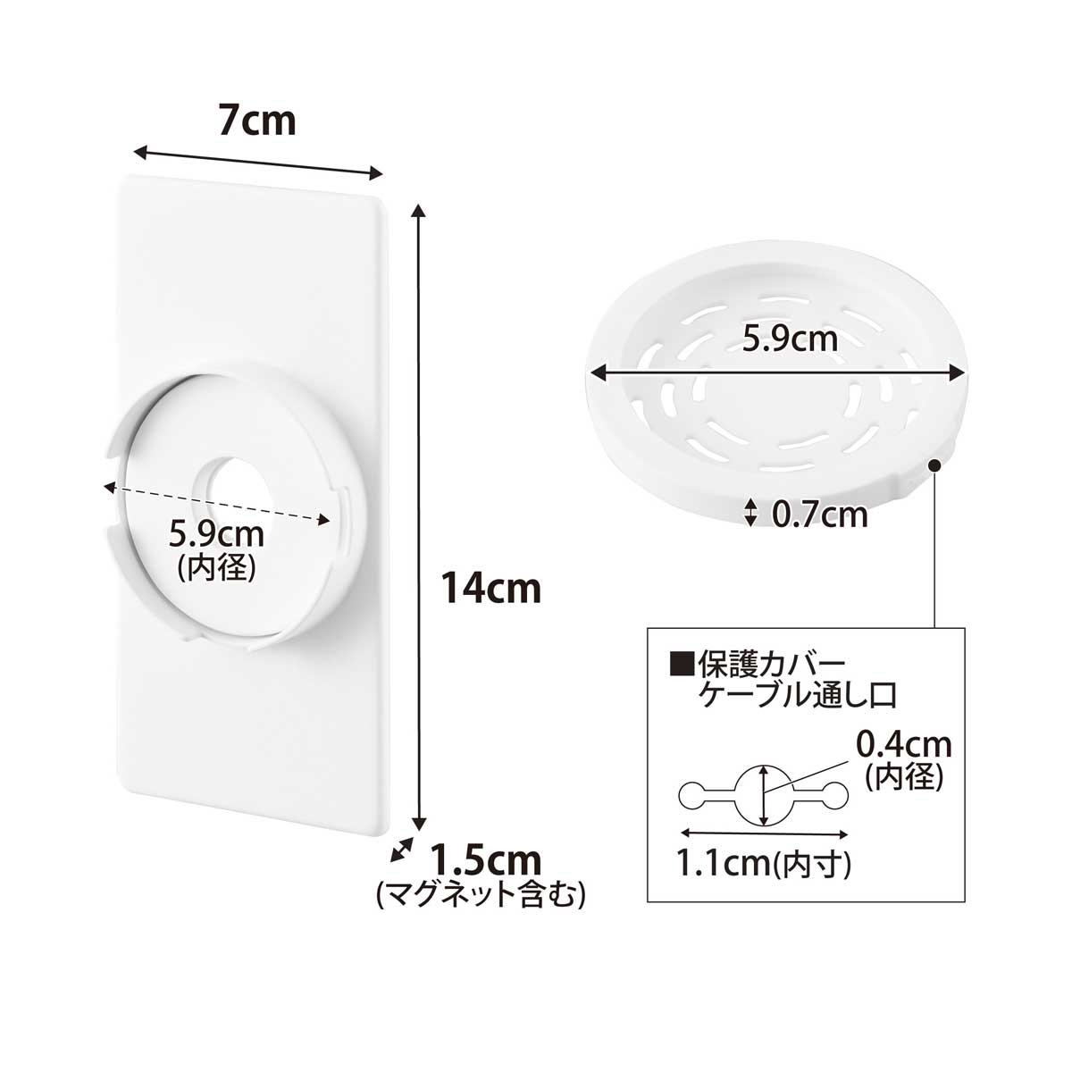 ・内寸サイズ:約内径59mm(ホルダー部)/約W11mm(保護カバーケーブル通し口、約内径4mm)