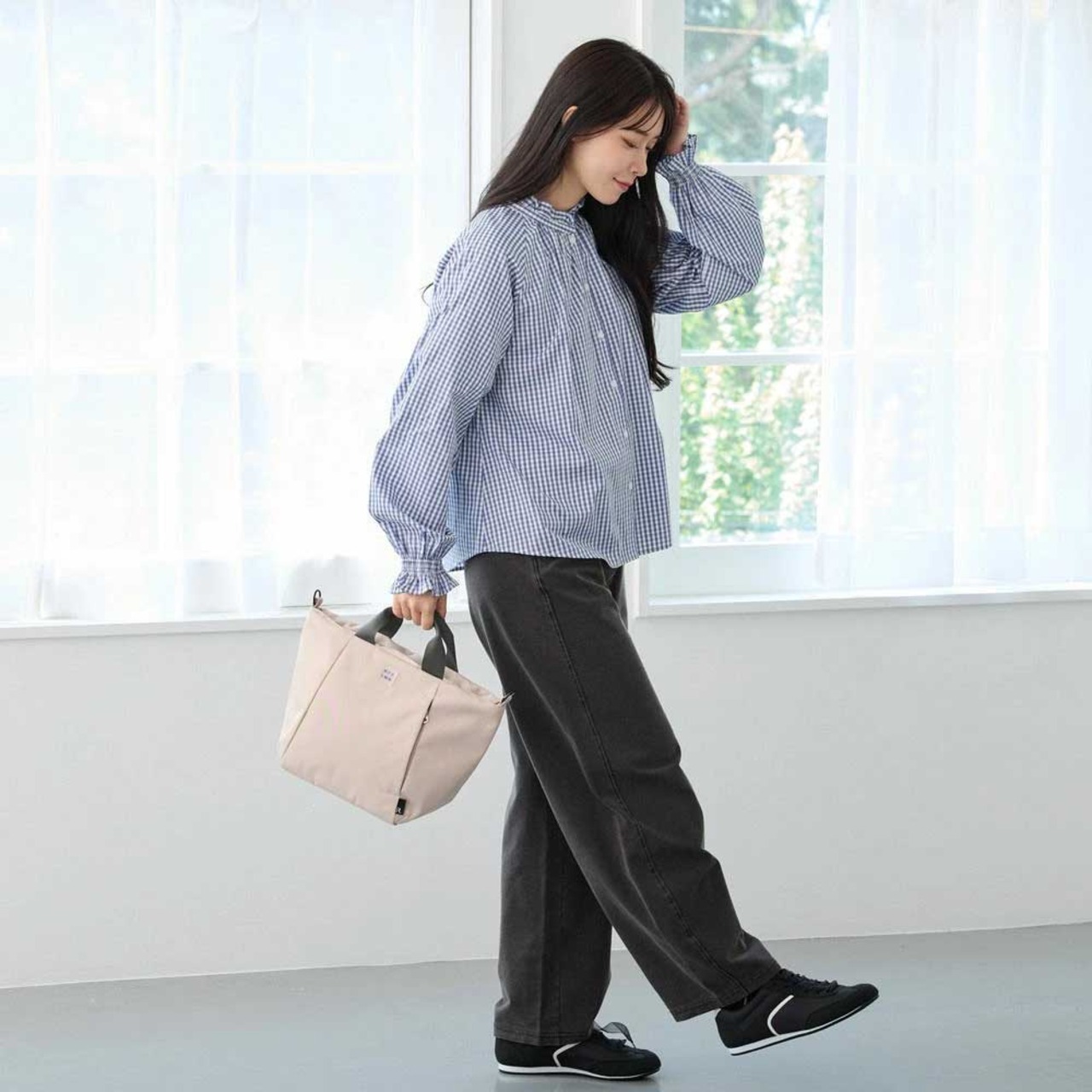 幅広マチで、ボトル、スマホ、折り畳み傘、財布、ポーチなど。必要なものがひと通り収まるので、日常のお出かけにおすすめ。開口部が広く出し入れスムーズな舟形。口元はファスナー開閉で、安心なつくりです。取り外し&長さ調節可能なショルダーベルト付で、手持ちでも斜め掛けでも、シーンに応じて使い分け。