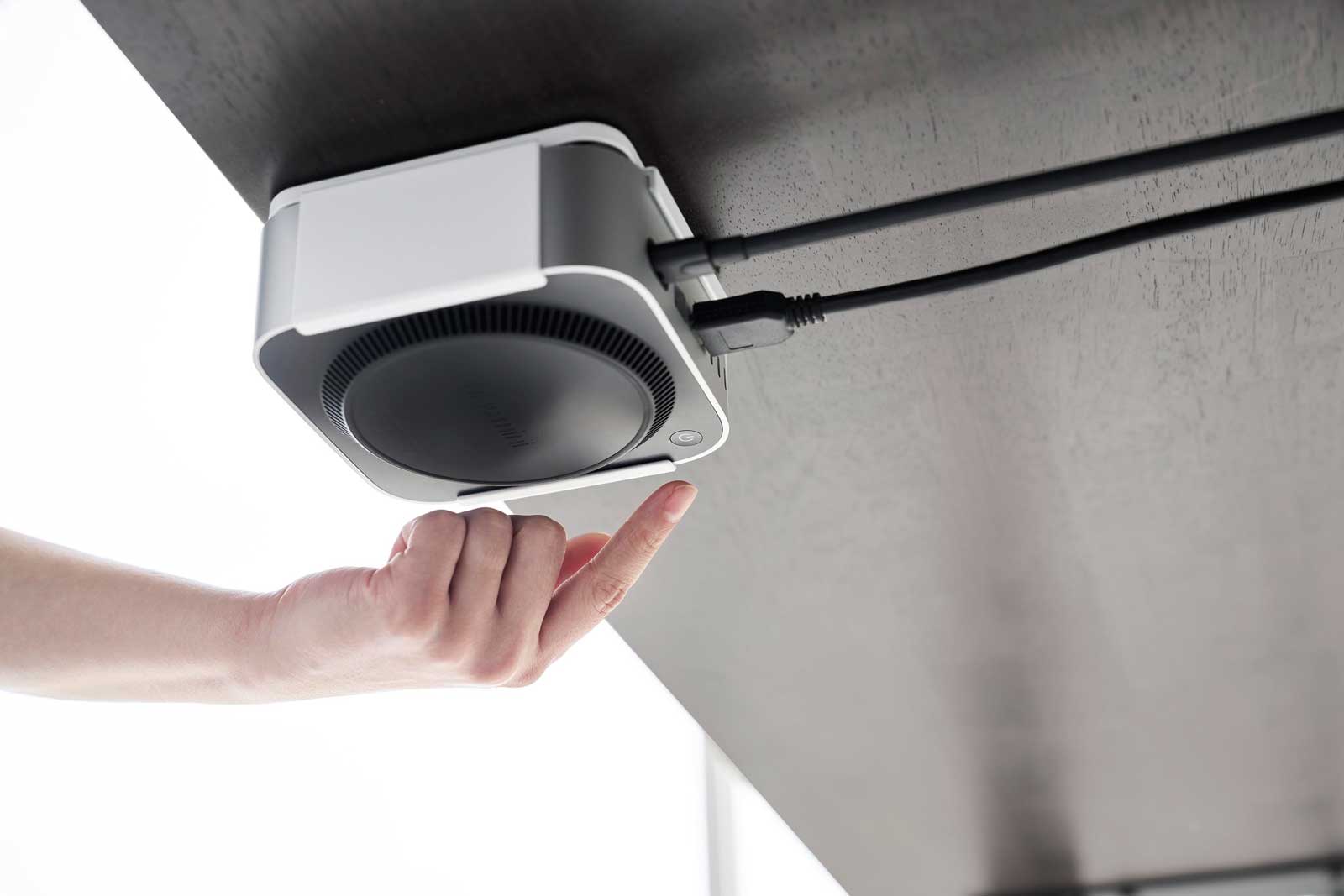 壁面には、穴が目立ちにくい石こうボードピンで簡単に取り付けでき、デスク下には木ネジでしっかり固定可能。スイッチ面が前面にくるように設置できるため操作しやすく、排気口をふさがない安心構造です。ラックはMac mini M4に対応しています。