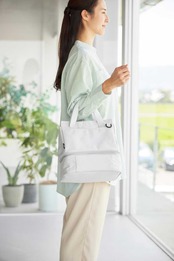 また、カトラリーを固定できるゴムバンドも付いているので、持ち運びも安心です。汚れたら丸洗いできるため、いつでも清潔に保てます。上段のバッグは、外ポケットが2つ付いており、小物の収納に便利です。また、サイドにあるボタンでサイズを調整できるので、シーンに合わせてスリムにもできます。持ち手とショルダーストラップが付いているので、様々な持ち方が選べます。