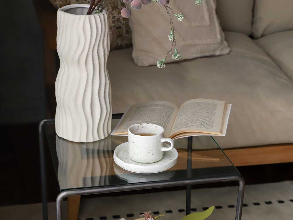 FUWARiシリーズのカップ&ソーサー。コンパクトなサイズ感が可愛らしい、ティータイムアイテム。FUWARi tea mugとFUWARi tea mug saucerセットでお届け。ティーマグ単体でも、カップ&ソーサーとしてもご使用いただけます。もちろんソーサー単体でも、お漬物やお菓子などのちょっとした食材を乗せる小皿としてもご使用頂けます。