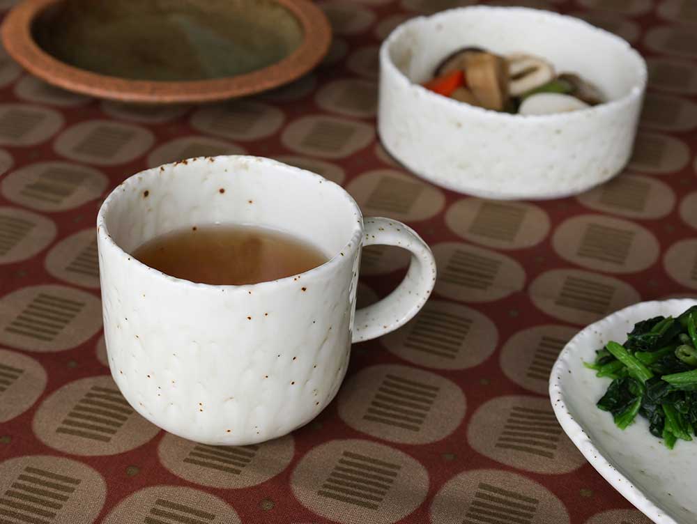 雪の暖かさを表現した陶器、FUWARiシリーズのマグカップ。320mlの容量たっぷりなマグカップで、水を飲んだり、紅茶を飲んだり、コーヒーを頂いたり、たっぷり容量で、様々な用途に使えるマグカップを、日常の相棒としていかがでしょうか。電子レンジ対応なので、牛乳を入れて電子レンジで温めてホットミルクも楽しめます。