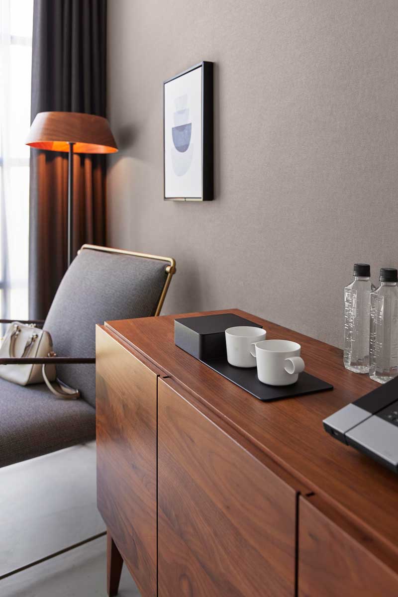 トレー部分は凹凸のないフラットな設計だから、マグカップやグラスを安定して置くことができます。また、メガネやアクセサリー類の一時置きにも便利。宿泊施設や店舗でのアメニティ収納をはじめ、ご自宅やオフィスで使えば、清潔感のあるホテルライクに。