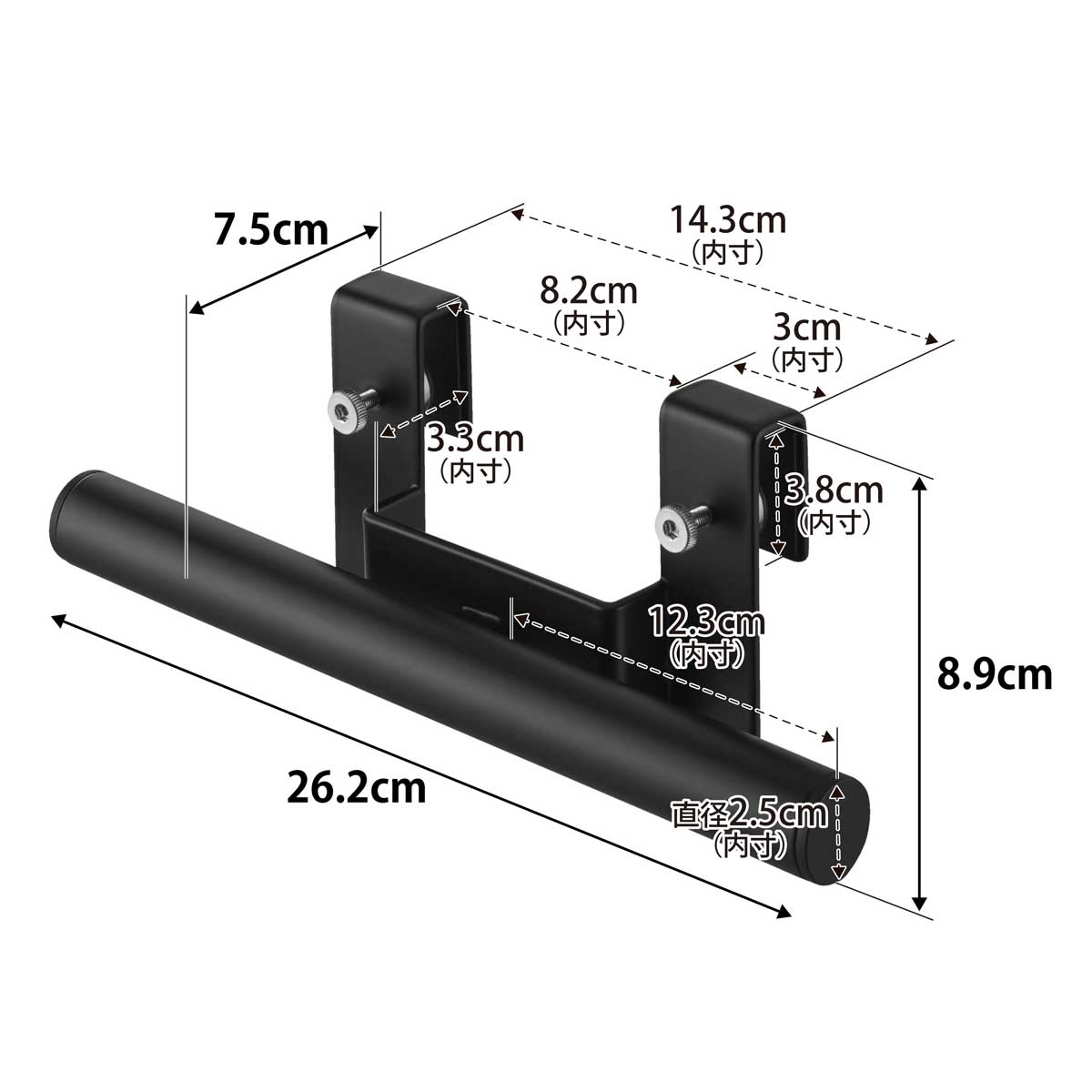 ・内寸サイズ:直径約25mm(ハンガー部)/約W123mm(片側あたり)