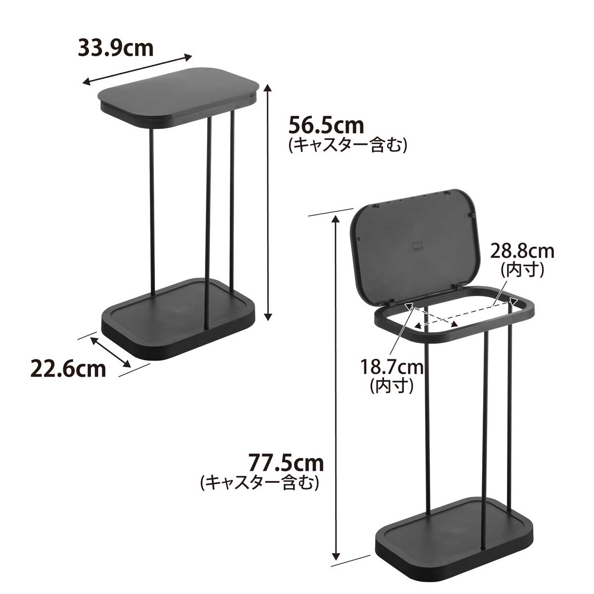 ・サイズ:約W226xD339xH565mm/約H775mm(蓋開口時最大)