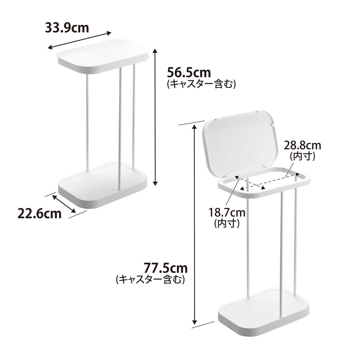 ・サイズ:約W226xD339xH565mm/約H775mm(蓋開口時最大)